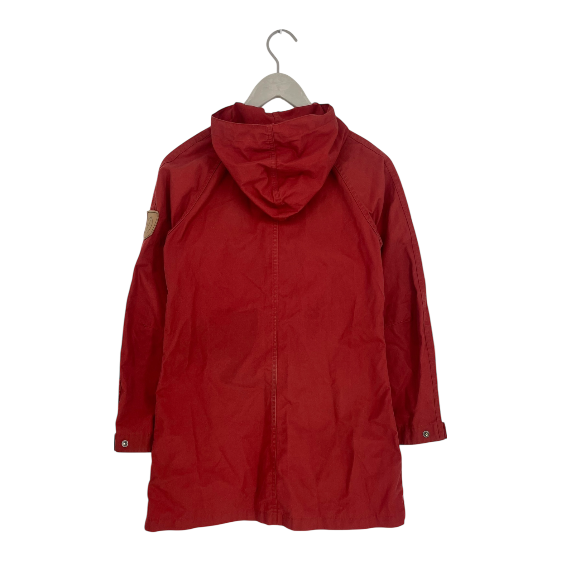 Fjällräven women's light midseason G-1000 jacket with four pockets and a hood. The hood is not removable. The jacket is waxed with a completely natural Greenlands wax and therefore has originally been waterproof. The jacket can be waxed at home to improve its water and wind repellency.