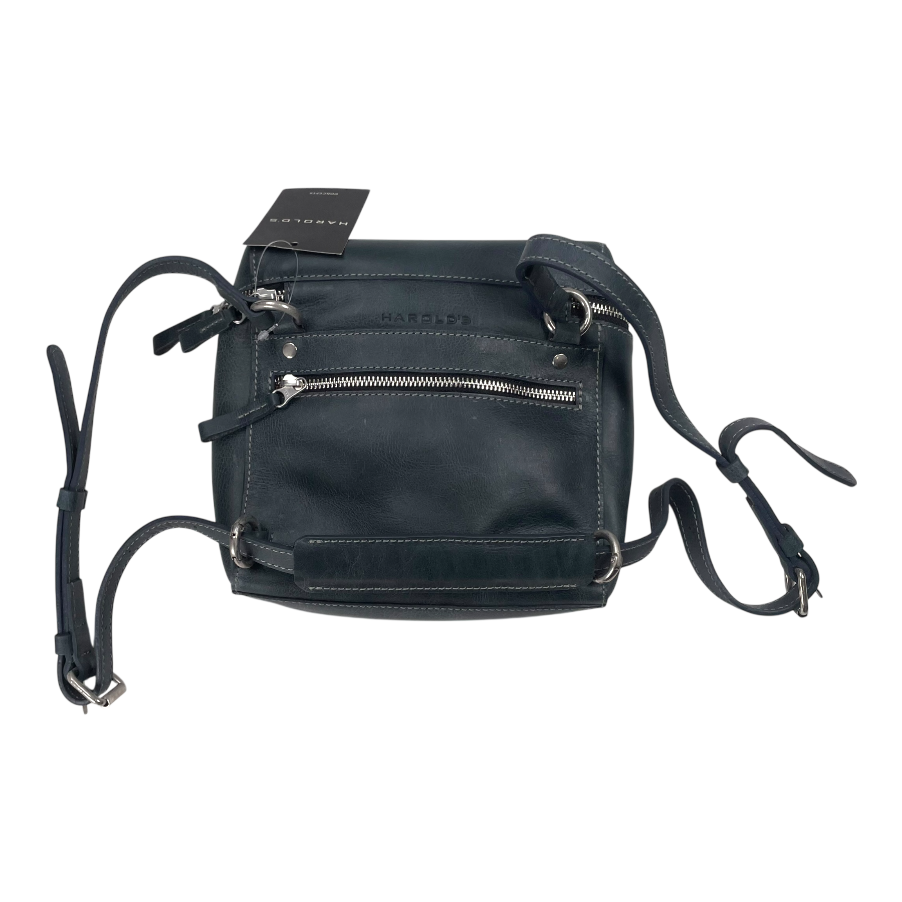 The Box Shoulderbag/Backpack Small can be worn in the following ways: as a messenger bag using the long, adjustable saddle leather shoulder strap, or alternatively, as a backpack. To do this, the strap is slightly extended and threaded through two hooks on the back. This transforms the shoulder strap into two backpack straps.