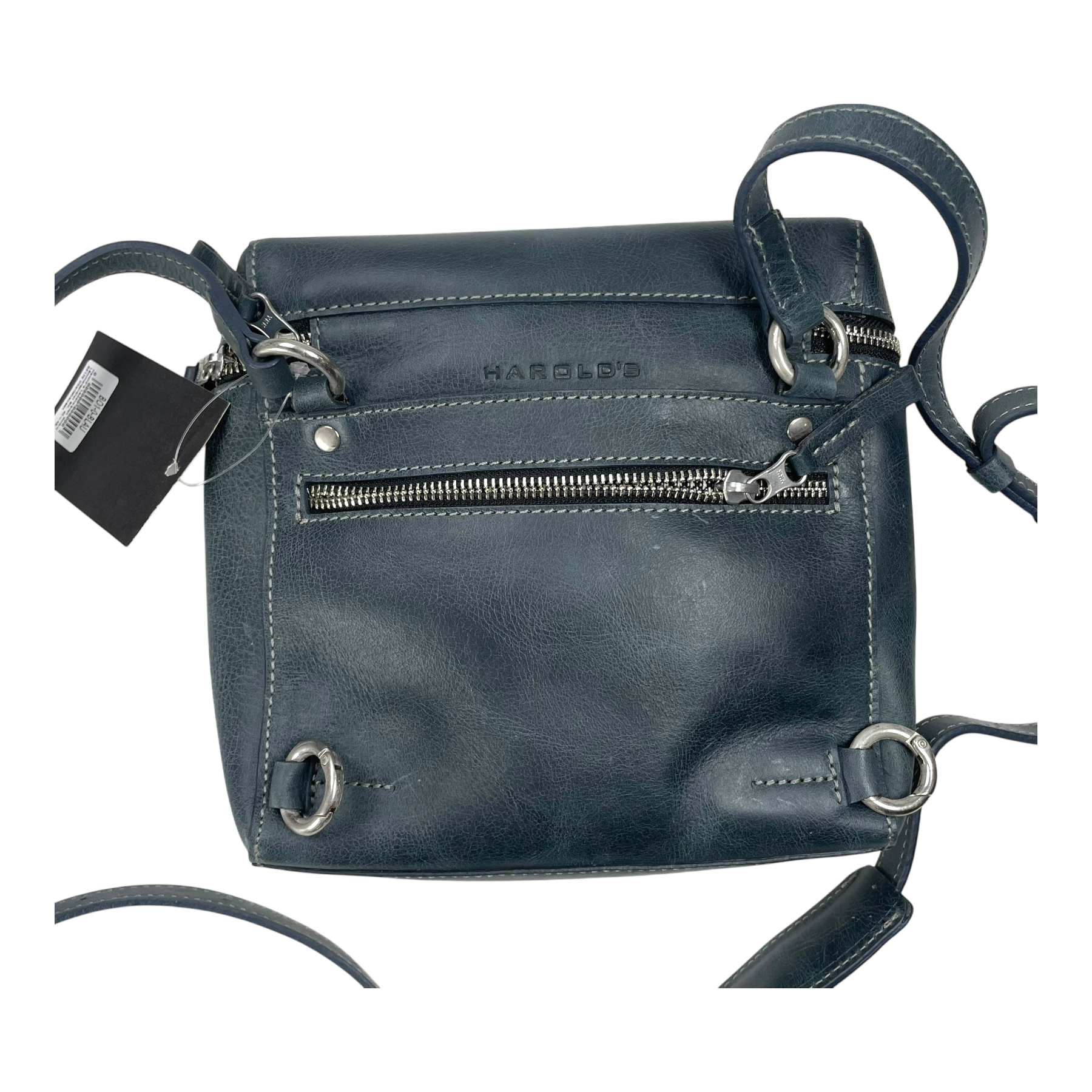 Harolds Bag Box Shoulderbag/Backpack Small. The design and appearance of the model are clean and simple, reminiscent of a "soft box." The main compartment opens with a horizontal zipper made of polished metal. The small hood can be easily folded away, providing a clear view of the bag's interior. The black and cream mottled lining in a diamond-like weave creates a pleasant contrast. The zipper closes the main compartment completely, keeping the contents well protected—especially when worn as a backpack.