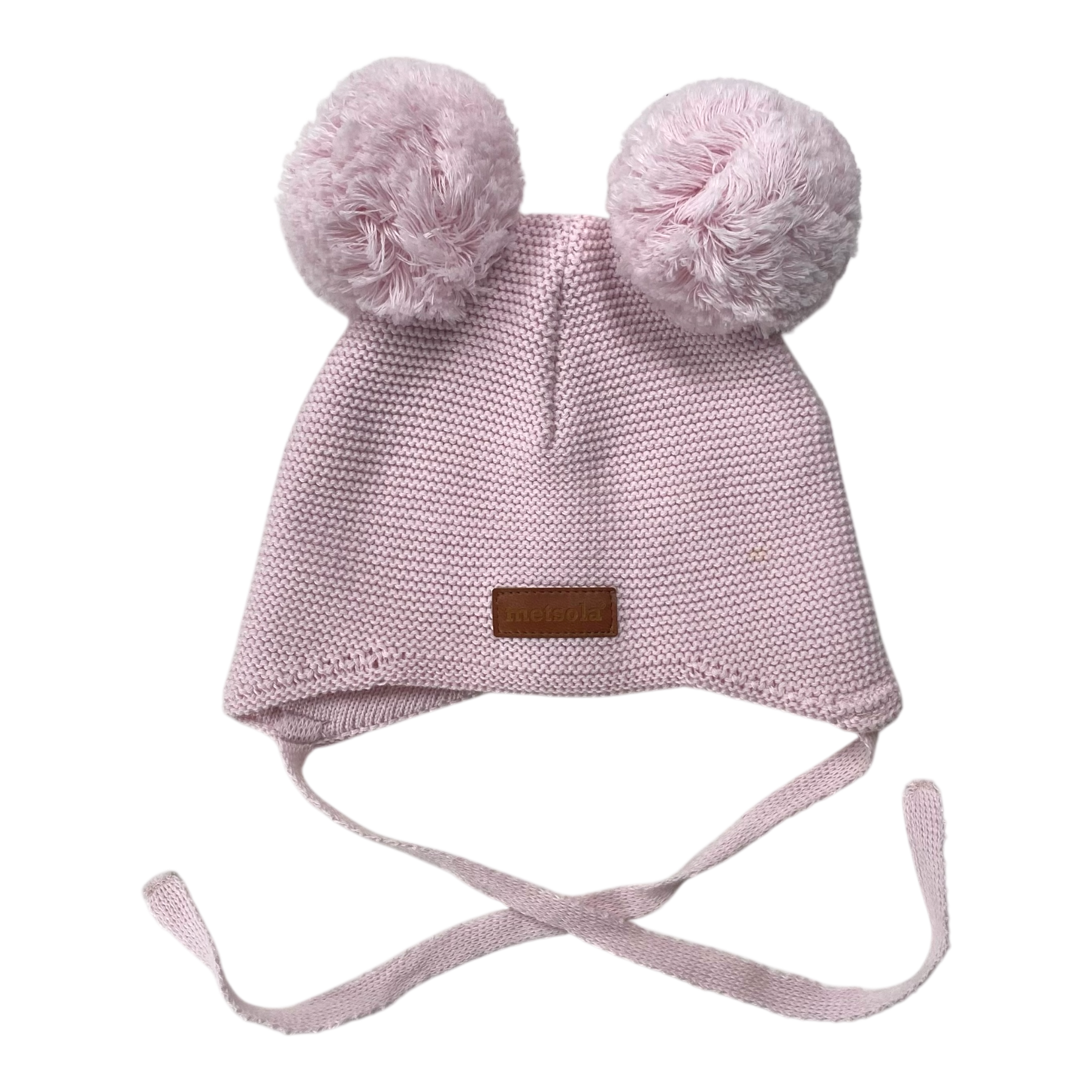 Metsola knitted beanie with poms.