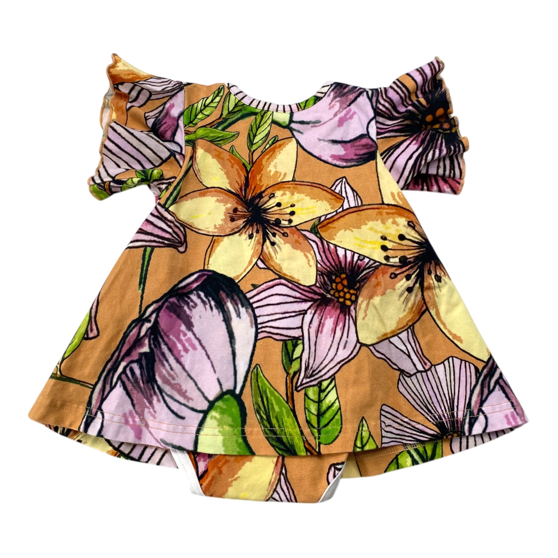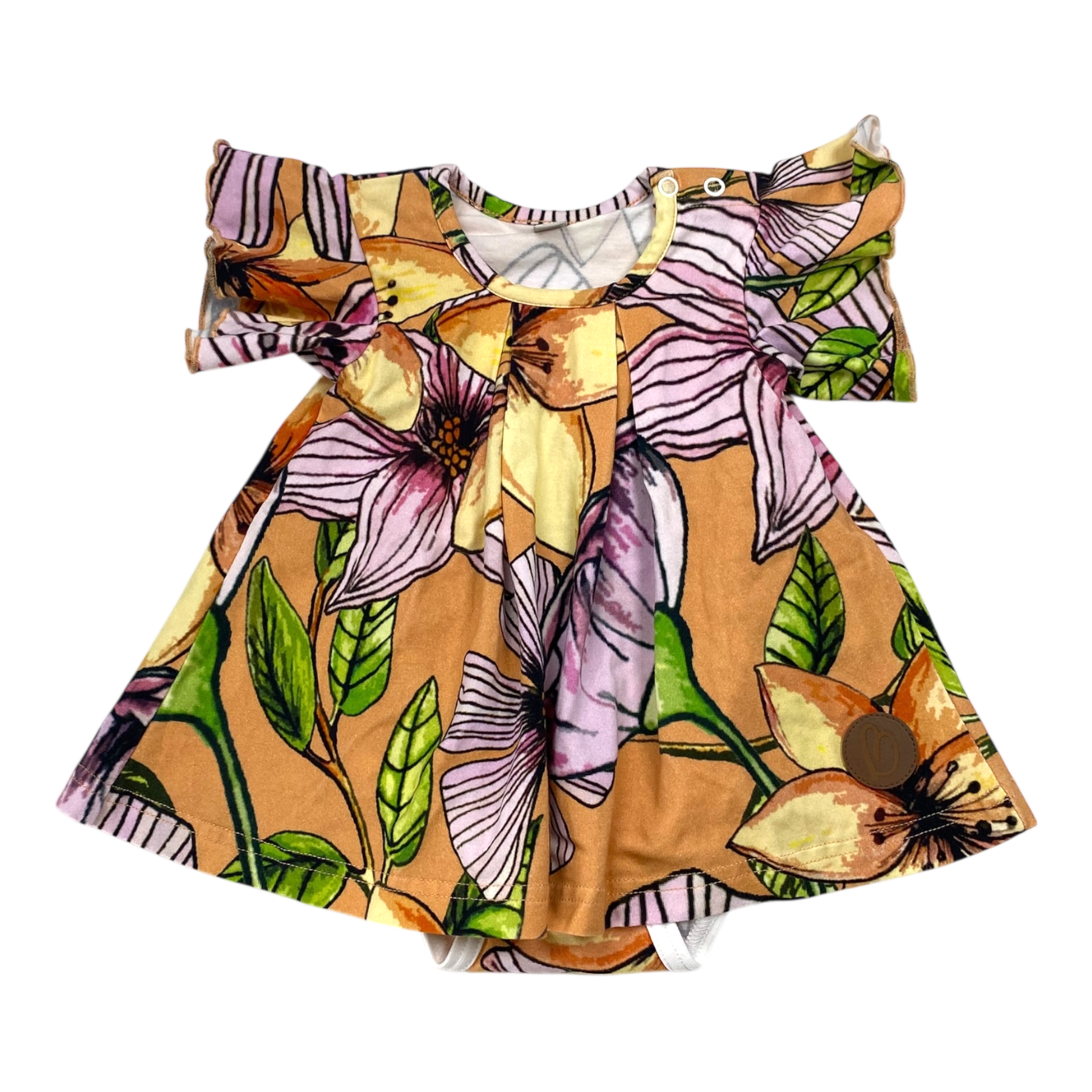 Blaa body short sleeve dress in flower print. There is press buttons on the left shoulder to make dressing easier.