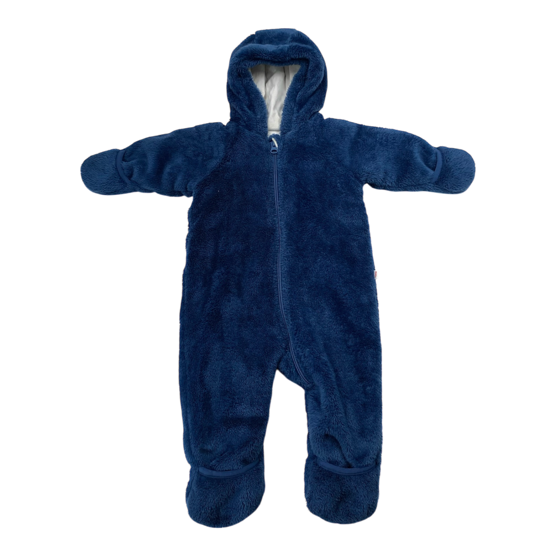 Reima Alku furry overall, with a long zip closure. Lined with smooth cotton jersey, fold-over sleeves and leg ends that protect little hands and feet from cold.