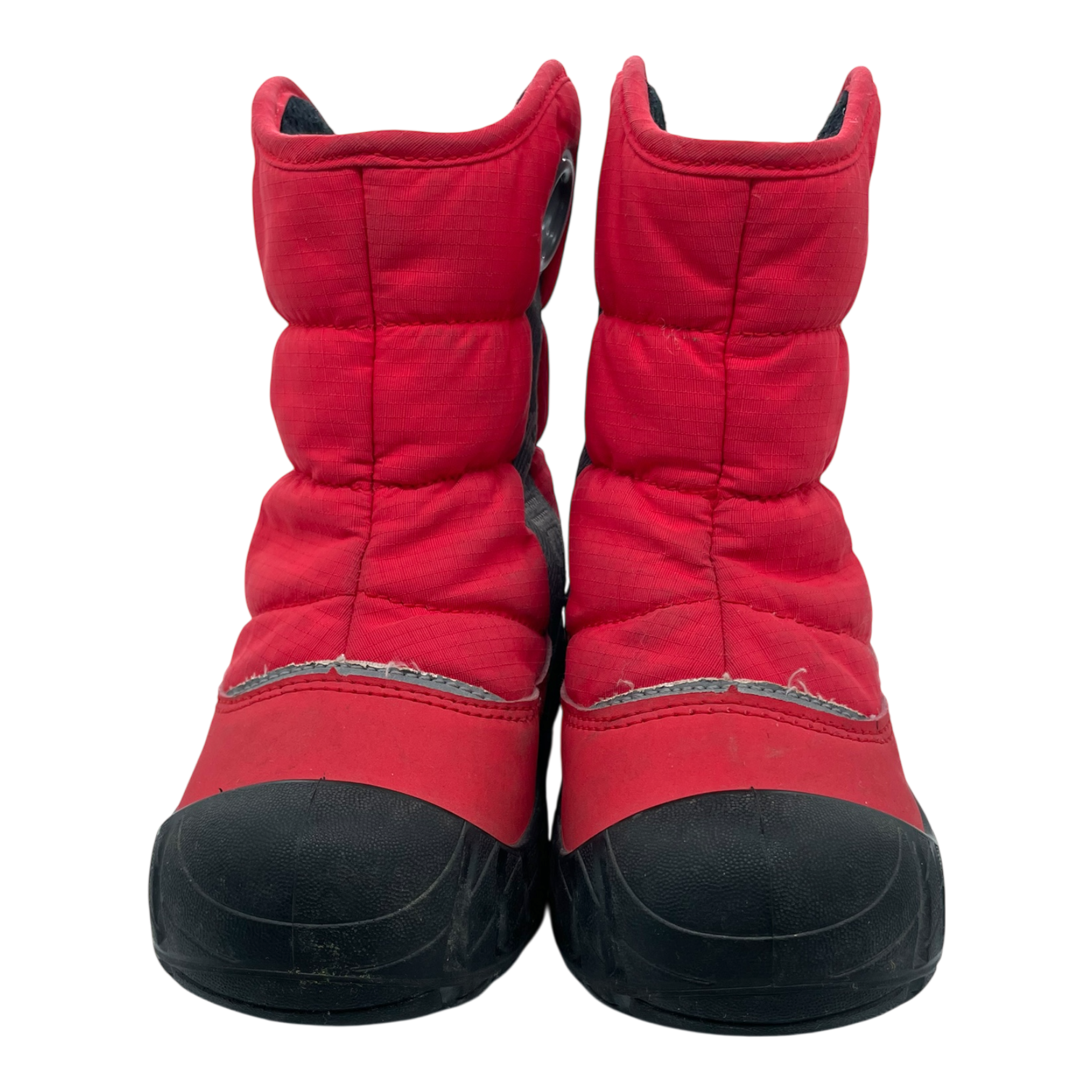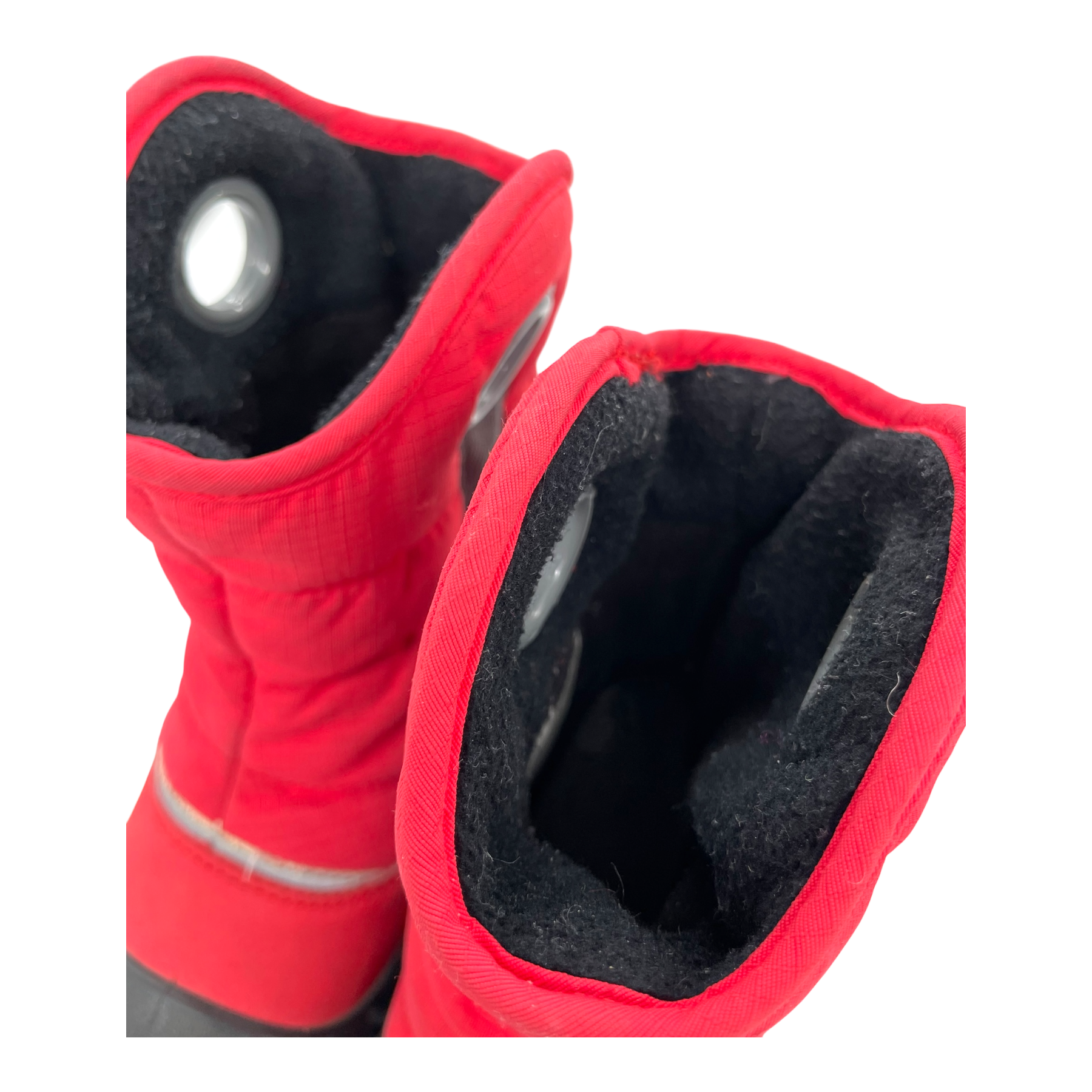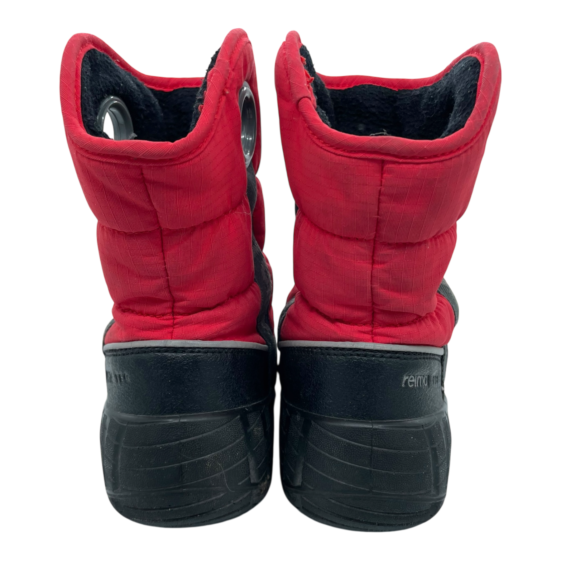 Reima Mega Mini winter boots with a warm 200 g wadding insulation and fleece lining. They're designed with reflective details for increased visibility. Boots are originally waterproof and have a seam-sealed lining with a waterproof membrane, ensuring playtime doesn't have to stop for wet weather. The reflector lining on the boot has some wear and the boots are dirty, as shown in the pictures.