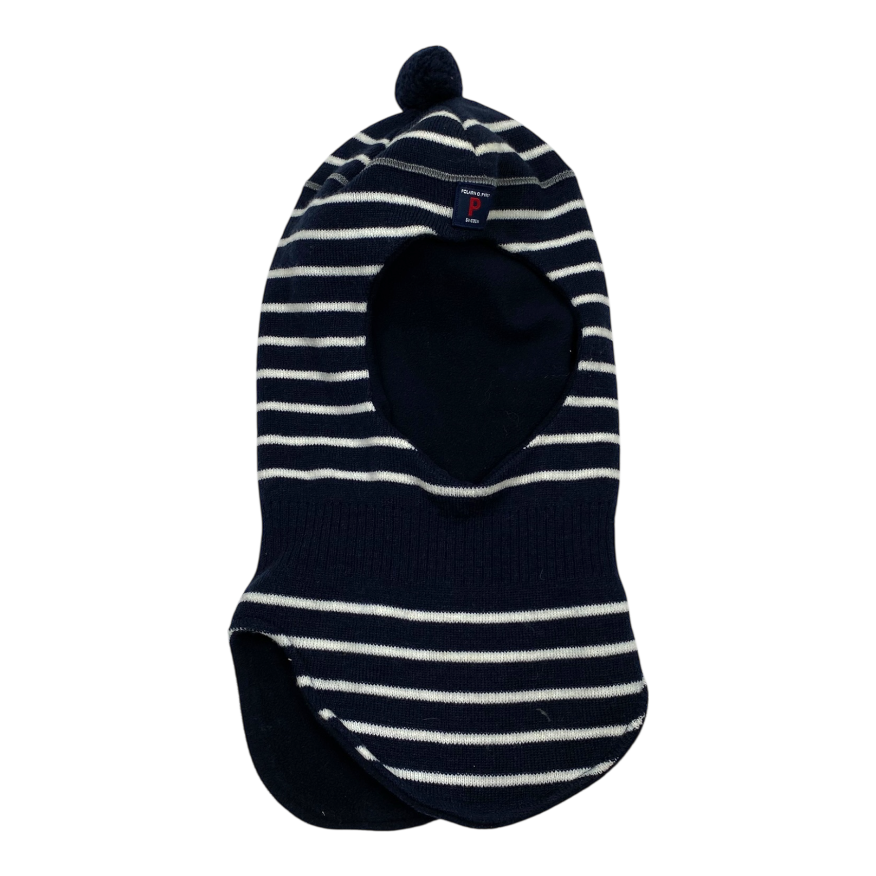 Polarn O. Pyret merino wool balaclava with a fleece lining and a pom.