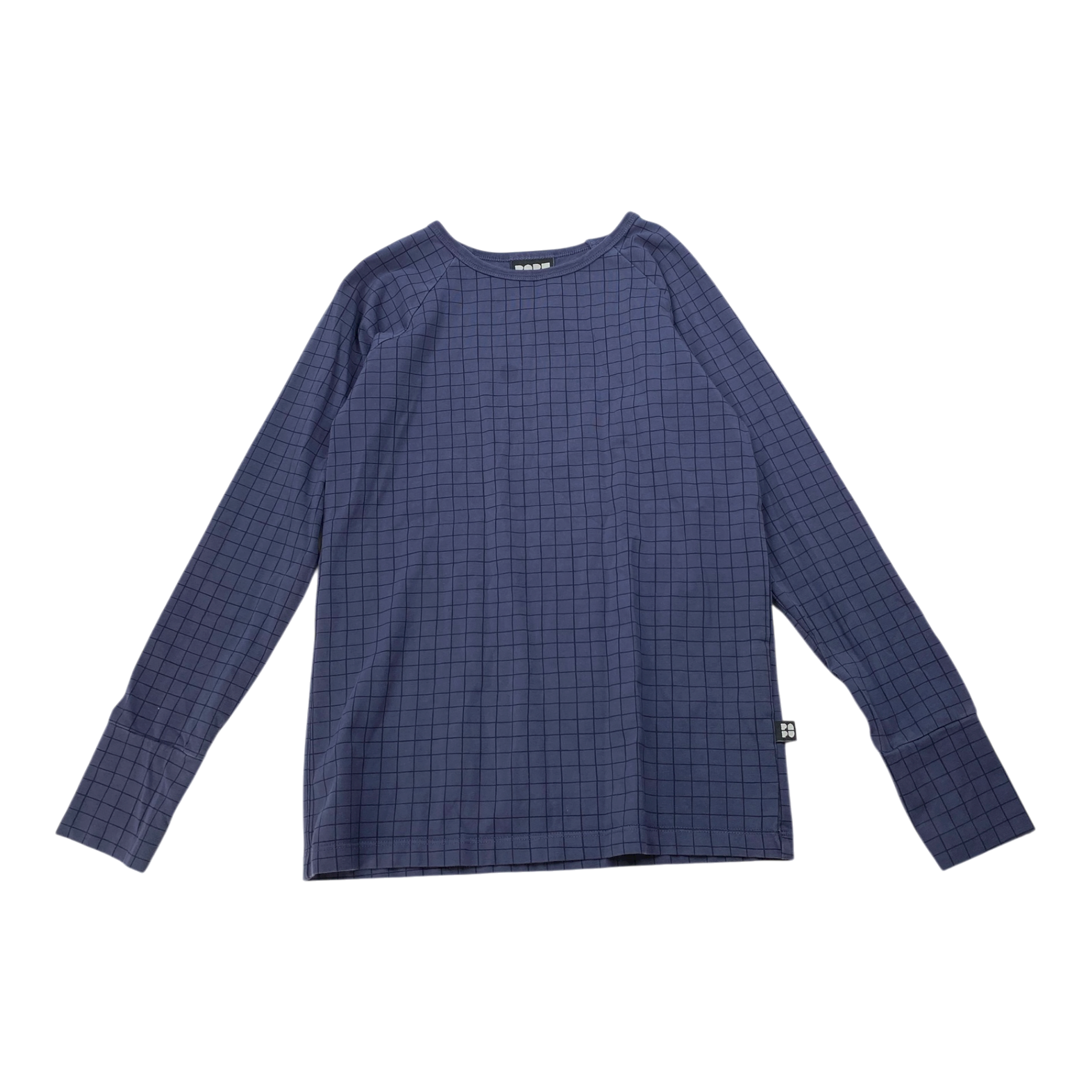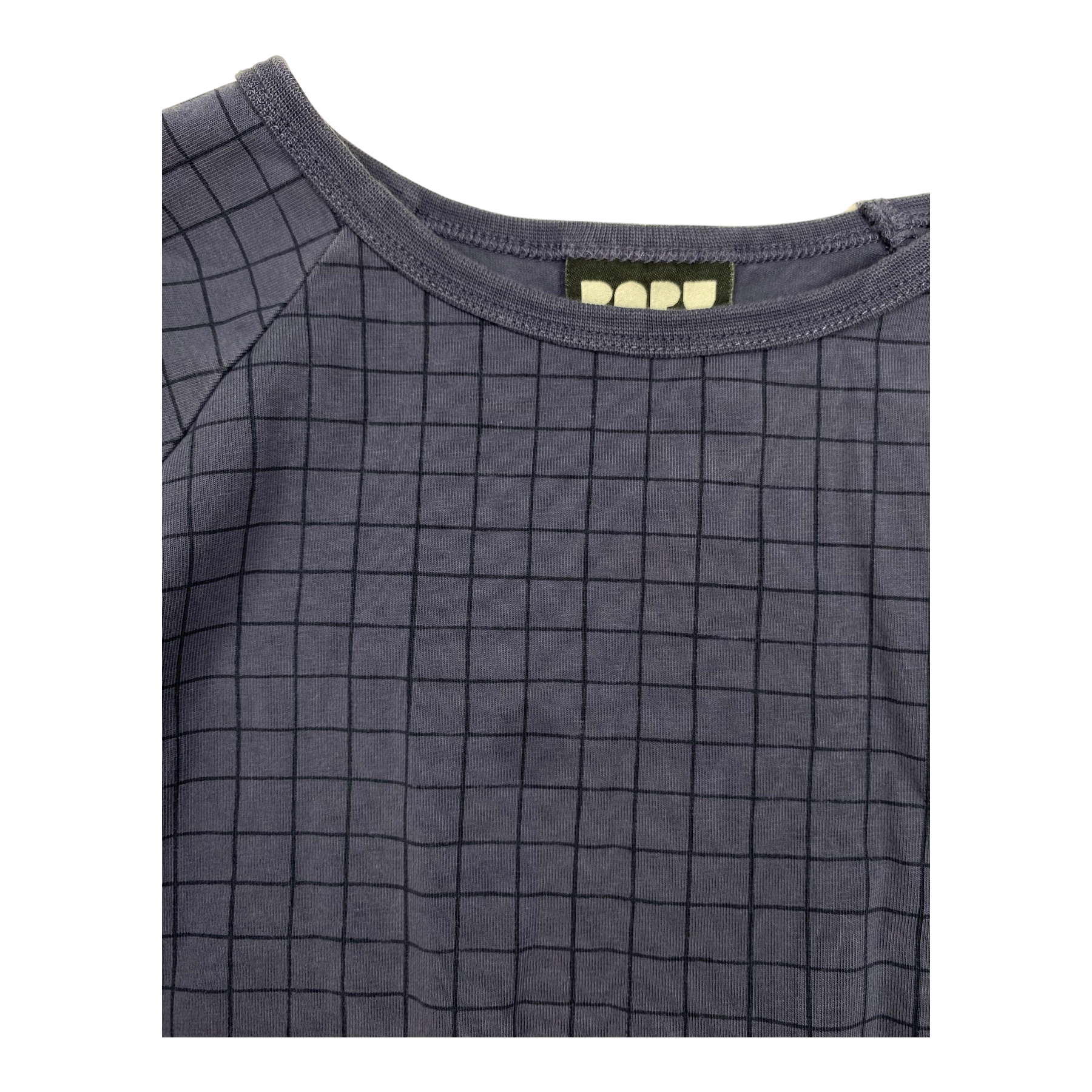 Papu long raglan sleeve shirt with foldable cuffs and round neckline. The item has a stain.