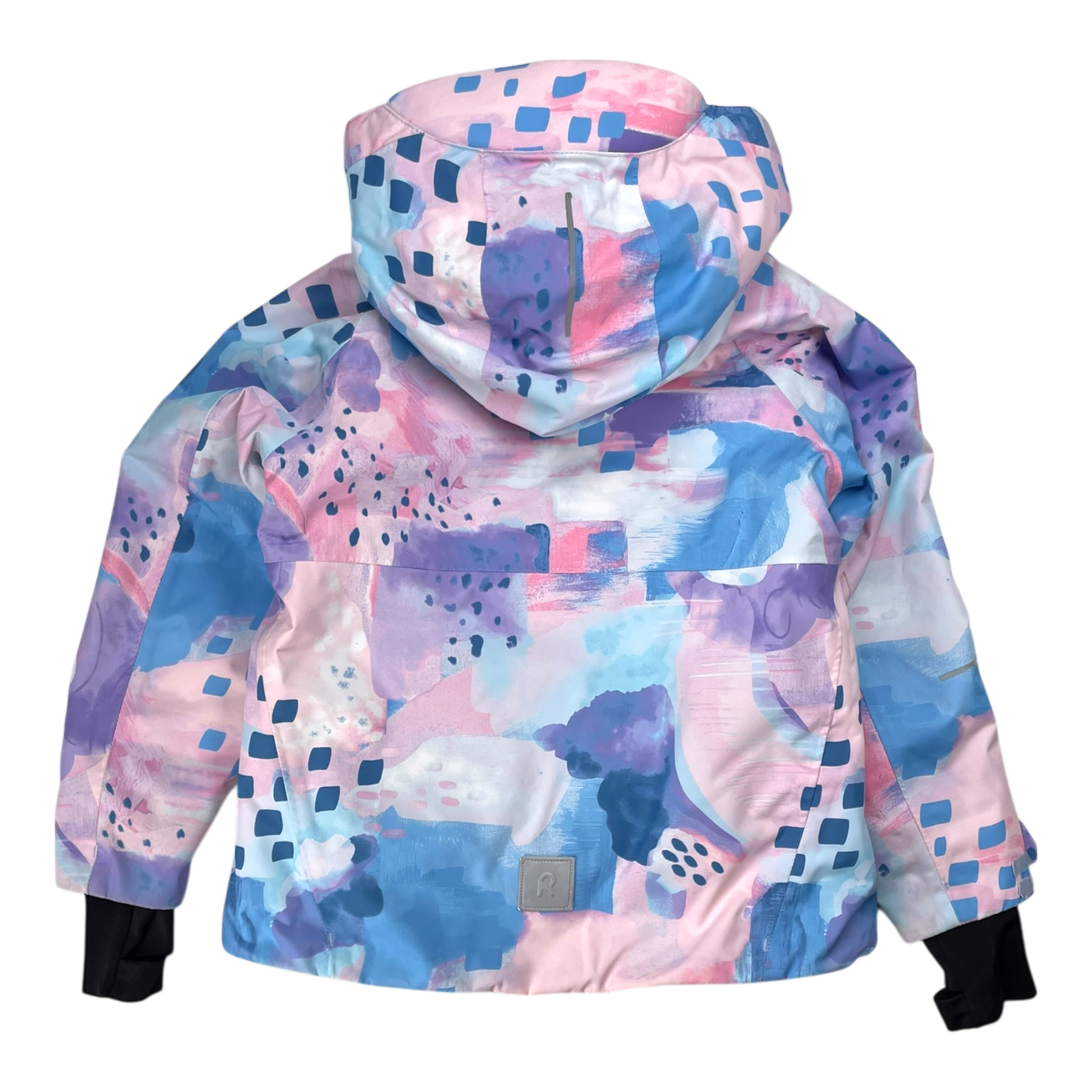Reima Posio winter jacket with detachable hood, adjustable cuffs, snowlock on the waist, smart ski pass sleeve pocket, and pockets with water-repellent zips. Sealed seams and the fabric is originally waterproof, up to 10,000mm water column.
