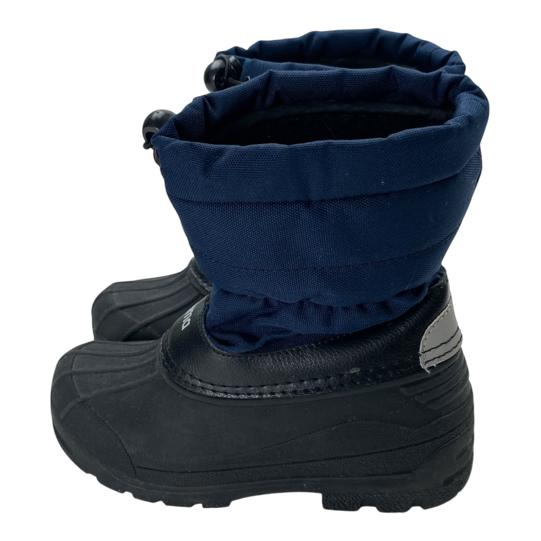Reima kids' Nefar duck snow boots equipped with a completely waterproof galosh section in durable thermoplastic rubber for protection from slush on wet days.