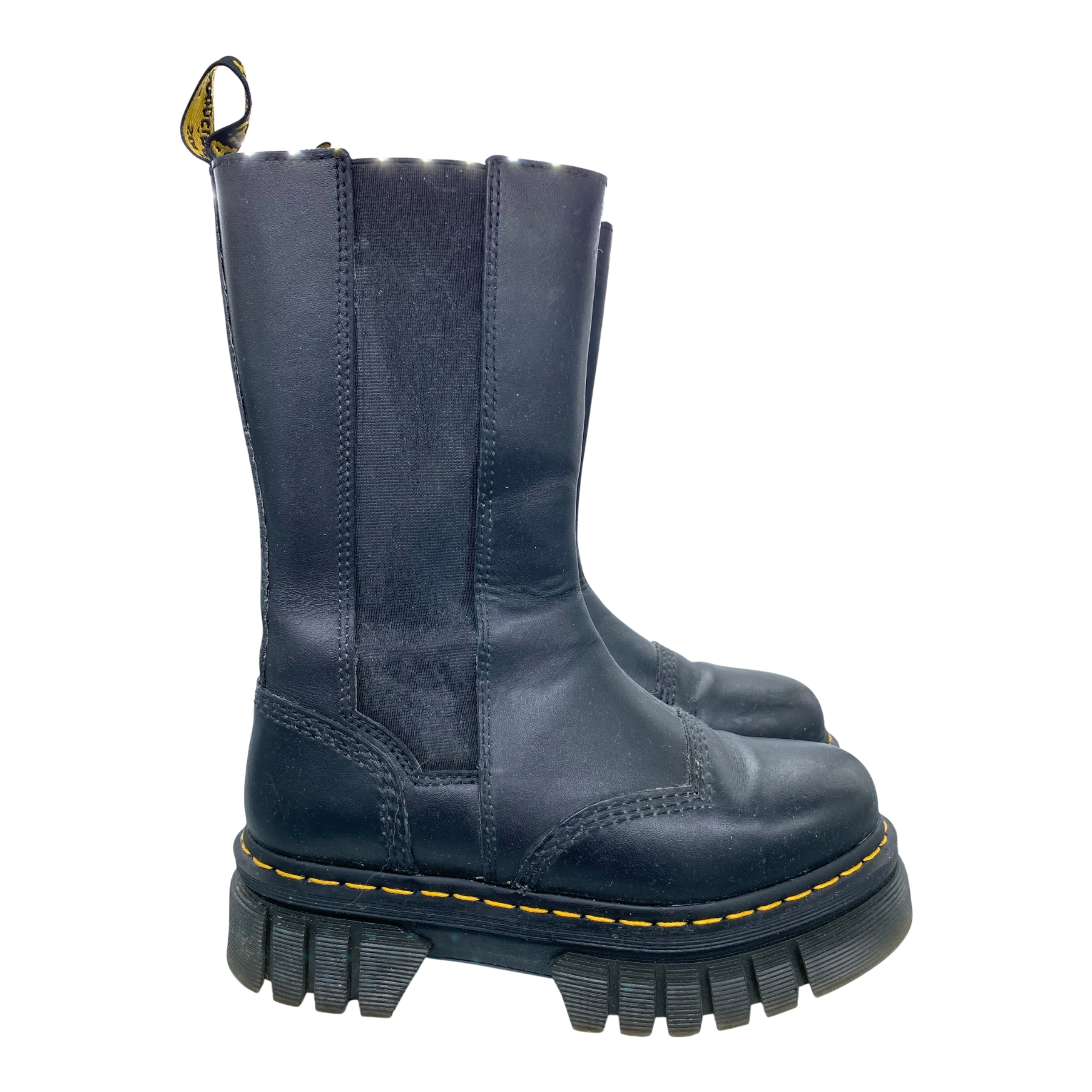 Dr. Martens Audrick tall chelsea boots with elastic side part and zipper on the side. The boots have