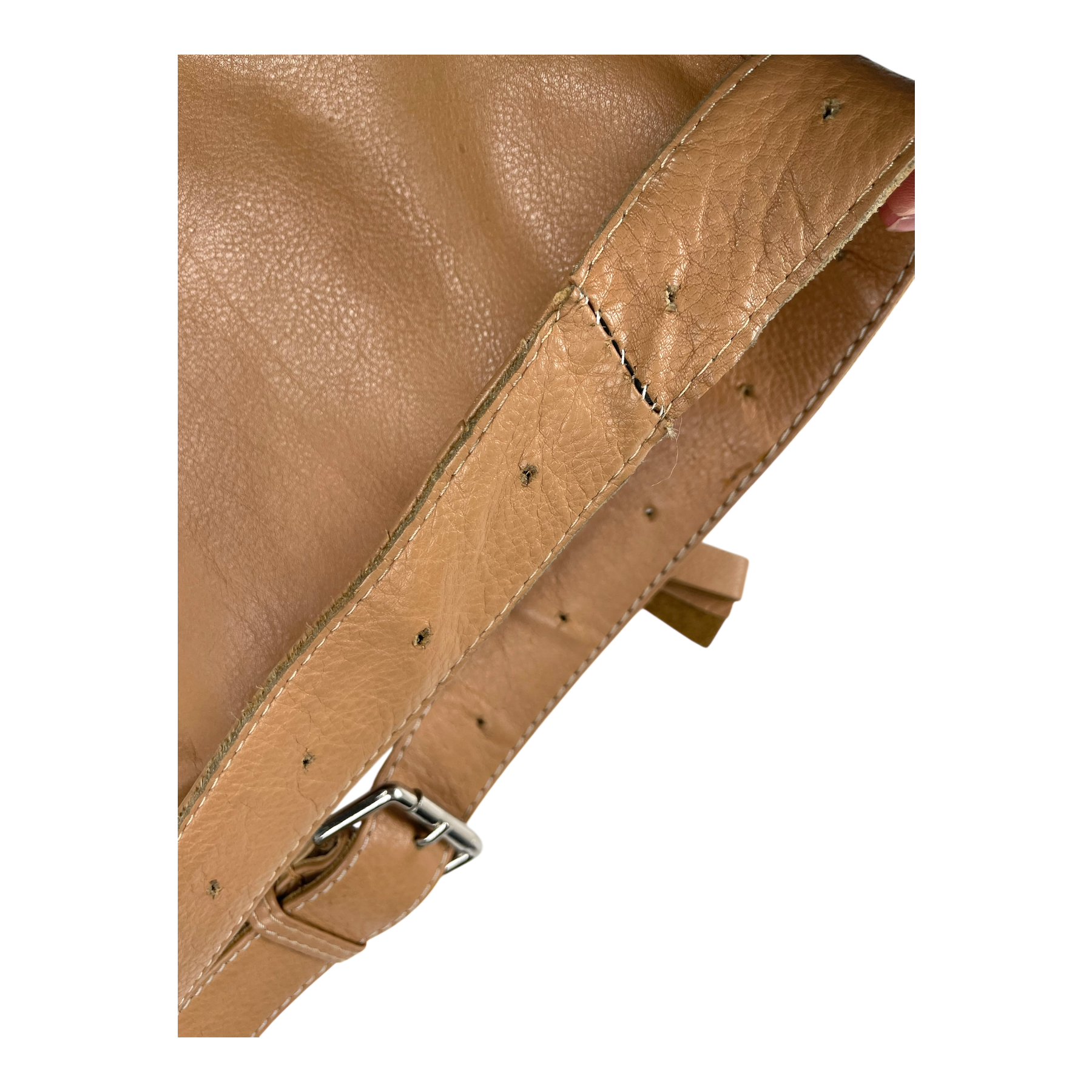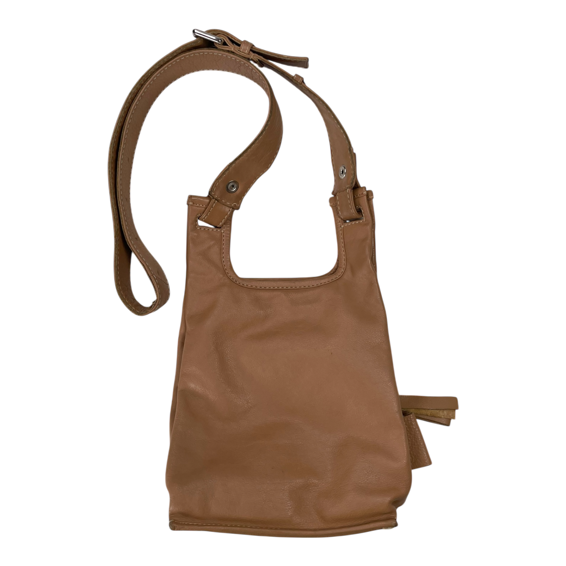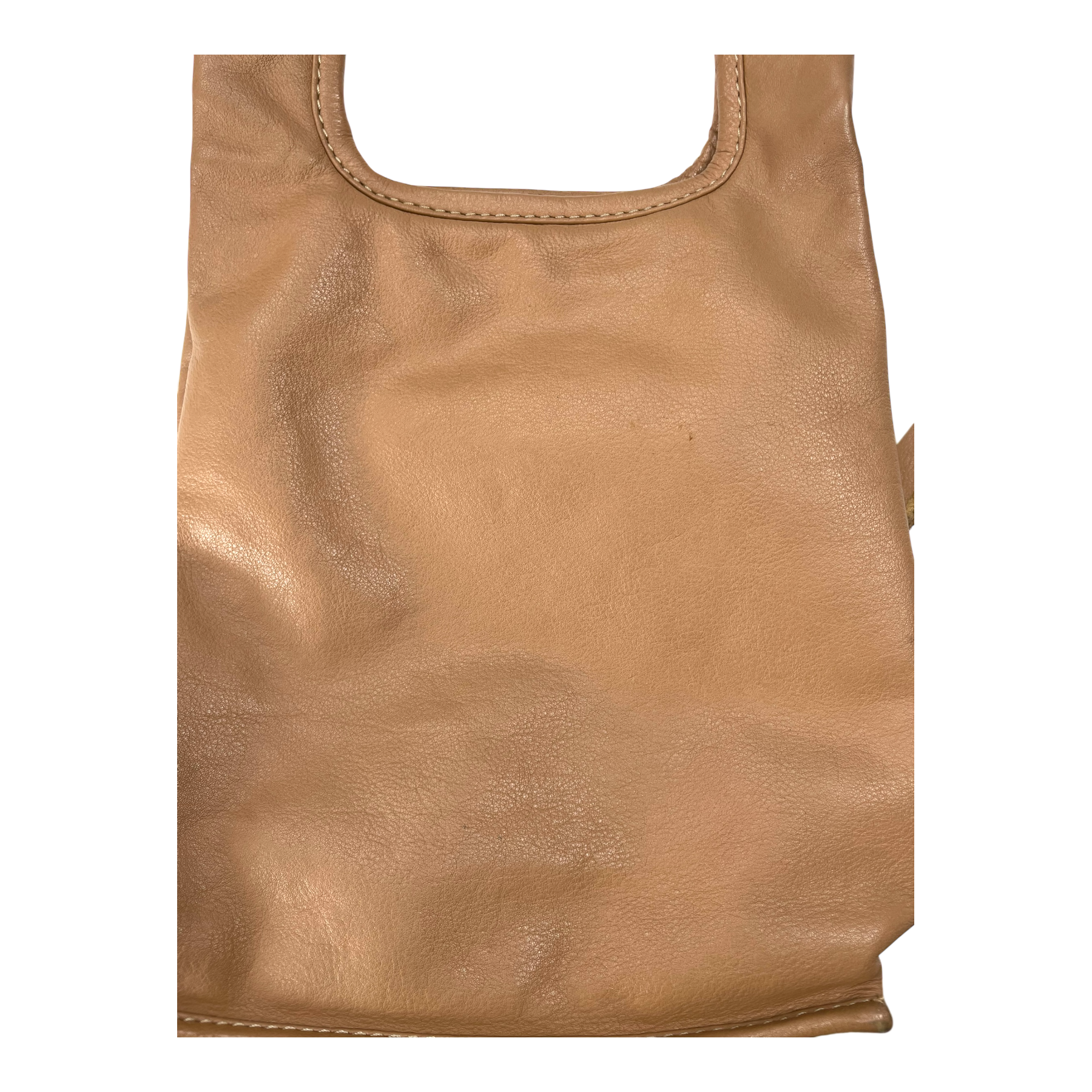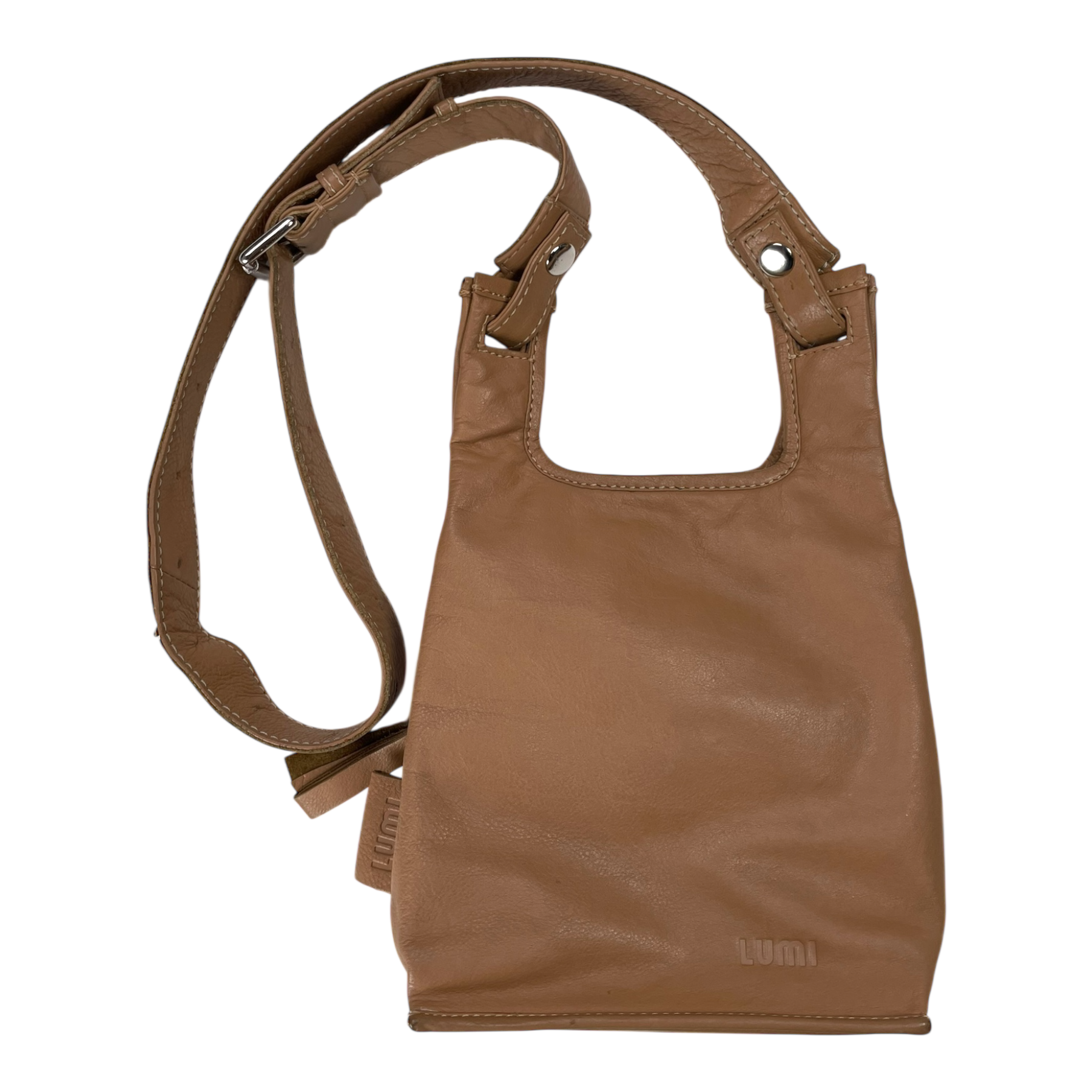 Lumi Supermarket bag in mini size made out of full grain, vegetable tanned, cow leather with cotton twill lining. Silver colored hardware and zipper closure. The item has clear signs of use.