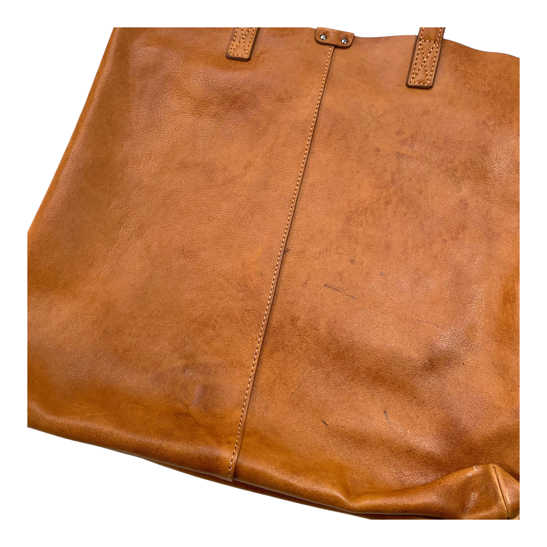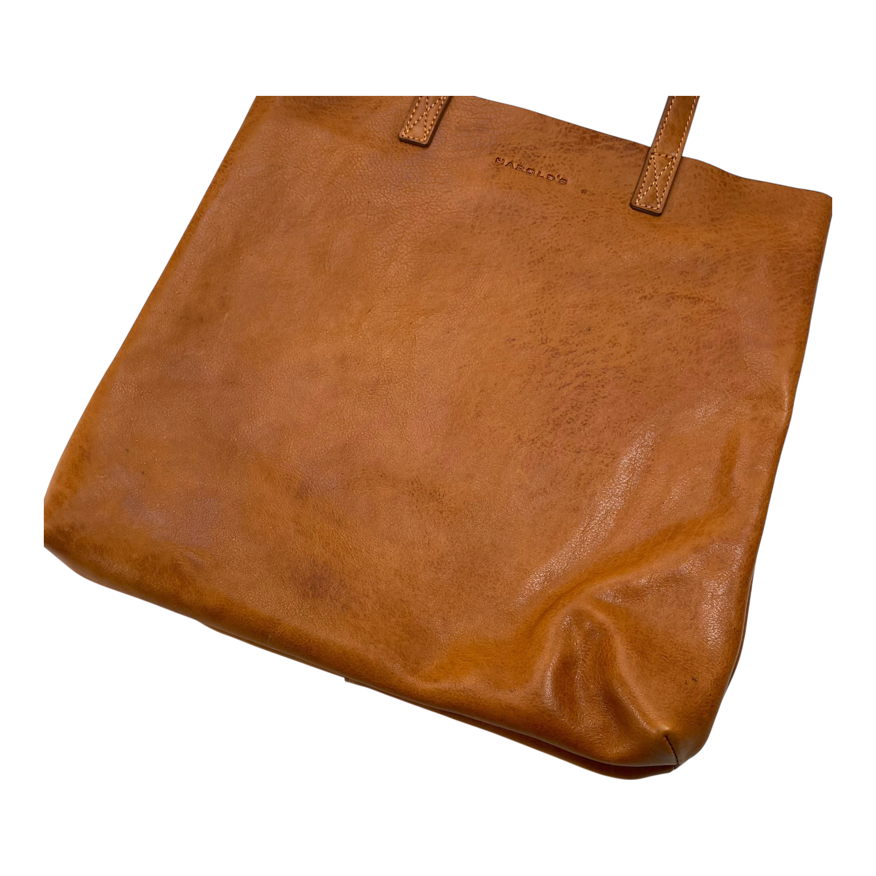 Harold's Caugio shopping shoulder bag up is made from 100% vegetable-tanned cowhide. The leather is soft to the touch and pleasantly lightweight. The wide shoulder strap consists of a textile webbing on one side and a leather strap on the other.