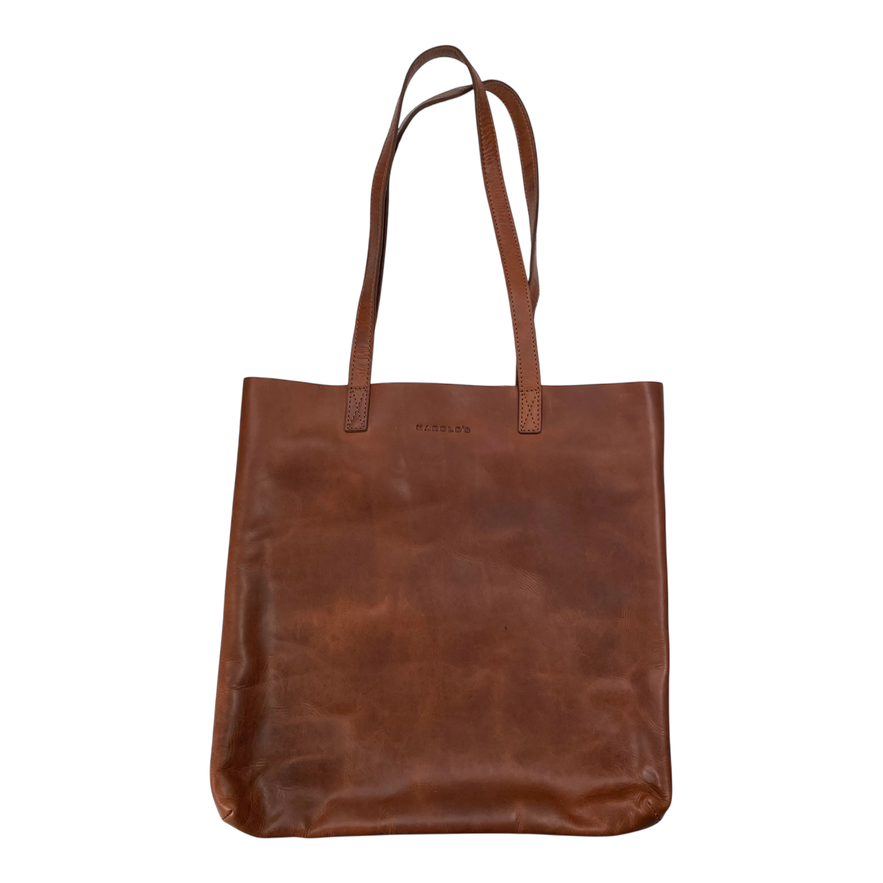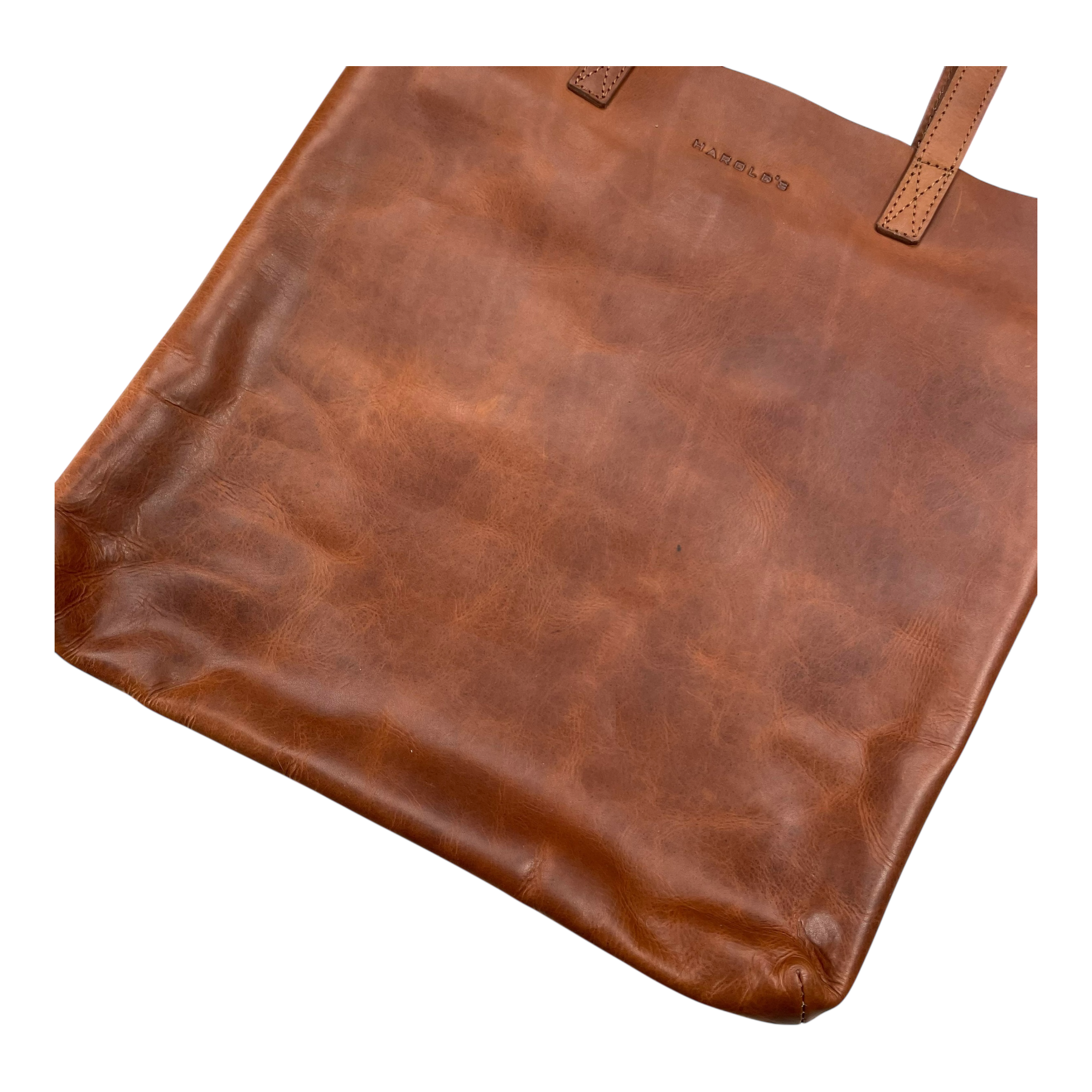 Harold's Caugio shopping shoulder bag up is made from 100% vegetable-tanned cowhide. The leather is soft to the touch and pleasantly lightweight. The wide shoulder strap consists of a textile webbing on one side and a leather strap on the other.
