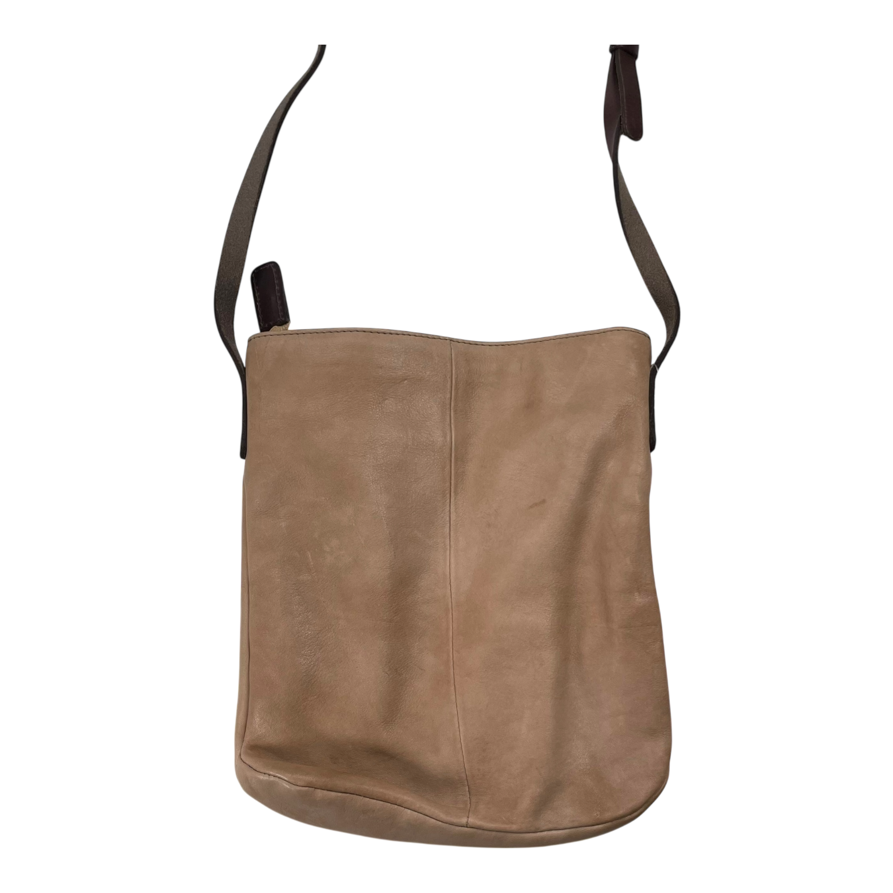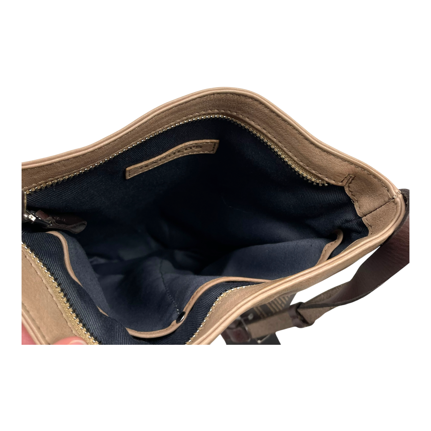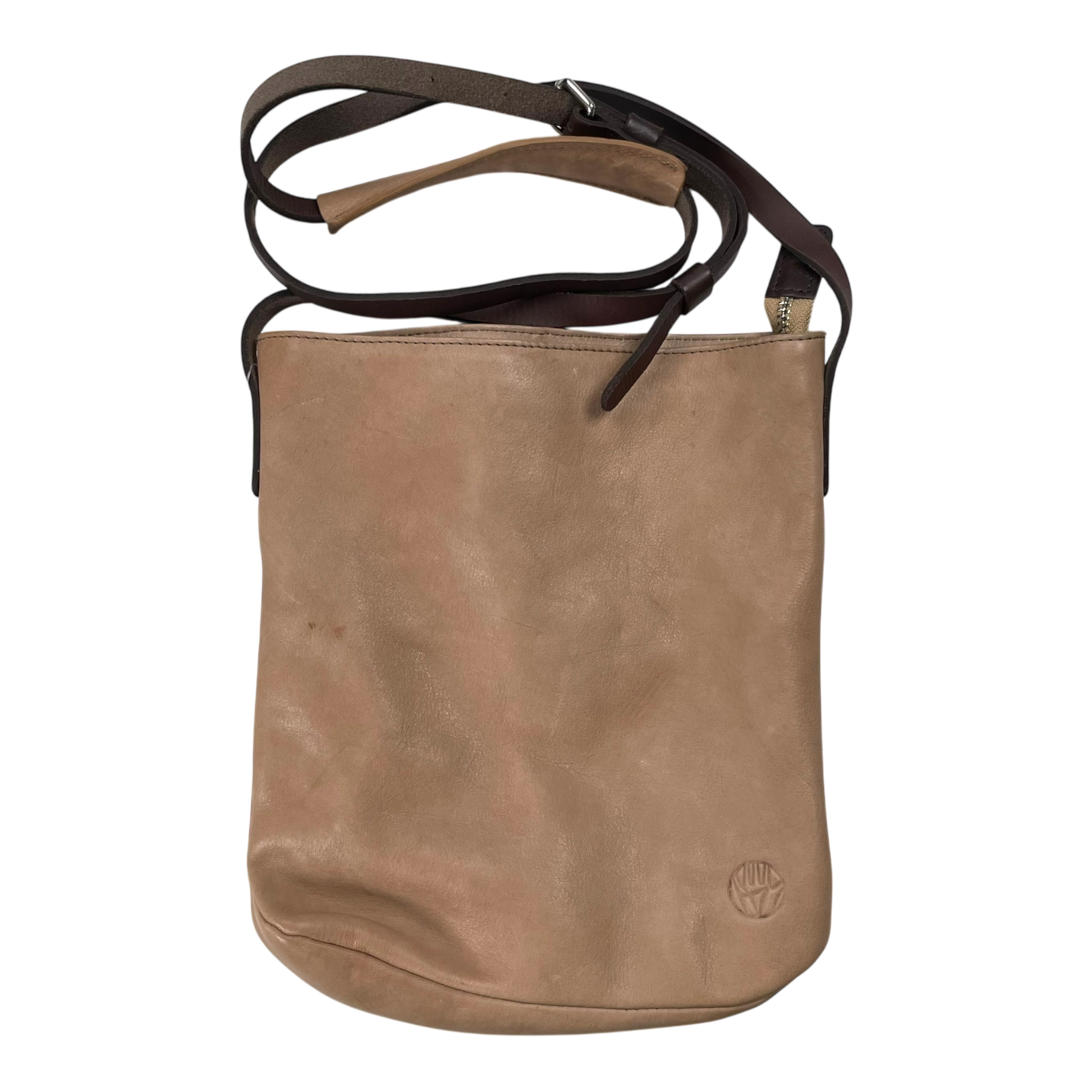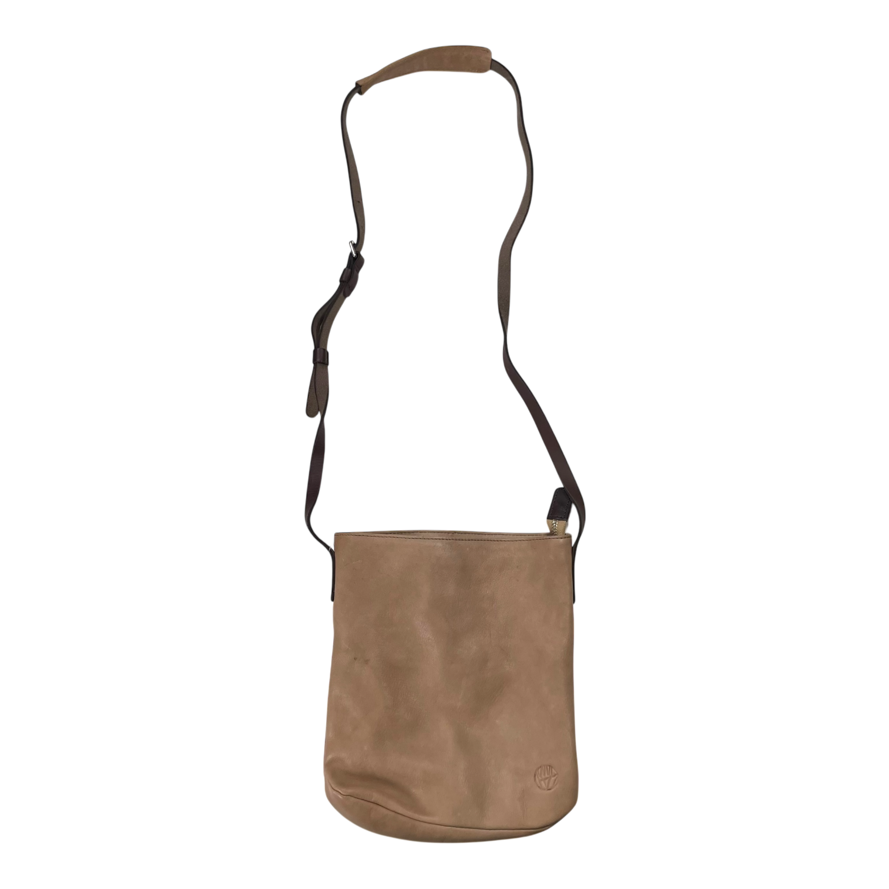 Harold's Bags Plain Crossbag in beige. One main compartment closed with zipper. Two open pockets inside. Adjustable strap.