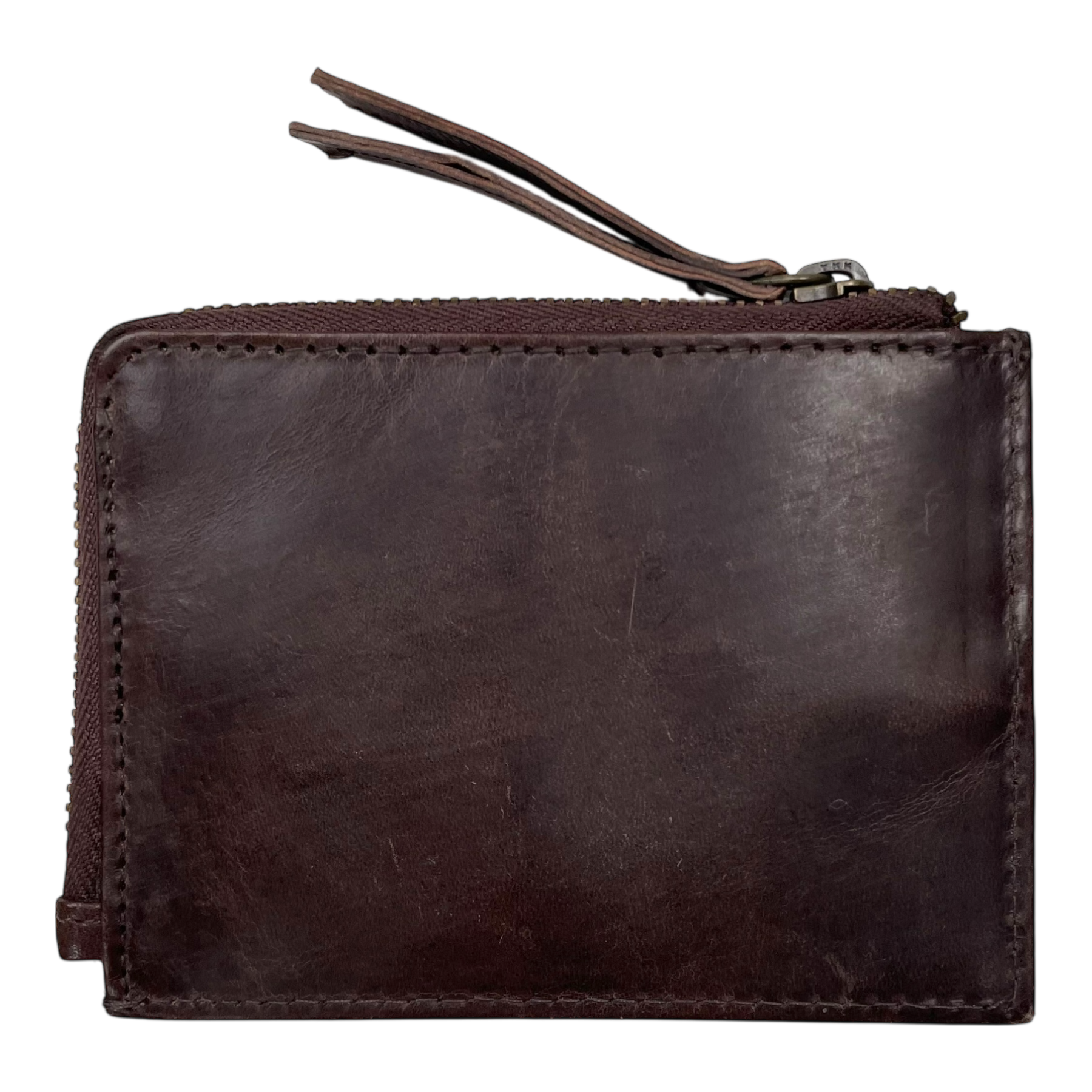 Holzrichter Berlin small leather wallet / card holder / coin purse. Charming in both form and function. Slim design with one zipper compartment and card compartments inside. Fits cards, bills, and coins. There is a key chain and a key ring to attach to your keys.