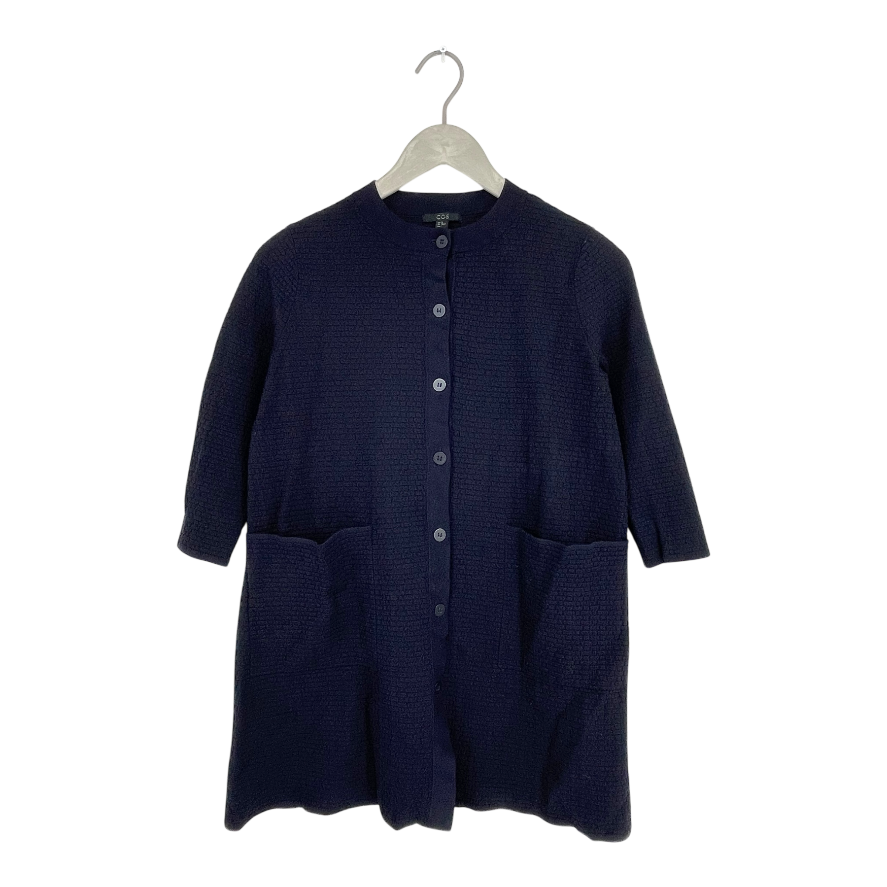 COS buttoned cardigan with front pockets and 3/4 sleeves.