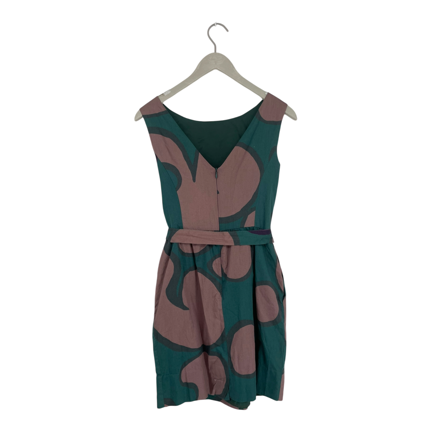 Marimekko sleeveless dress in Keidas print with pockets on the sides, a belt and a zipper back.