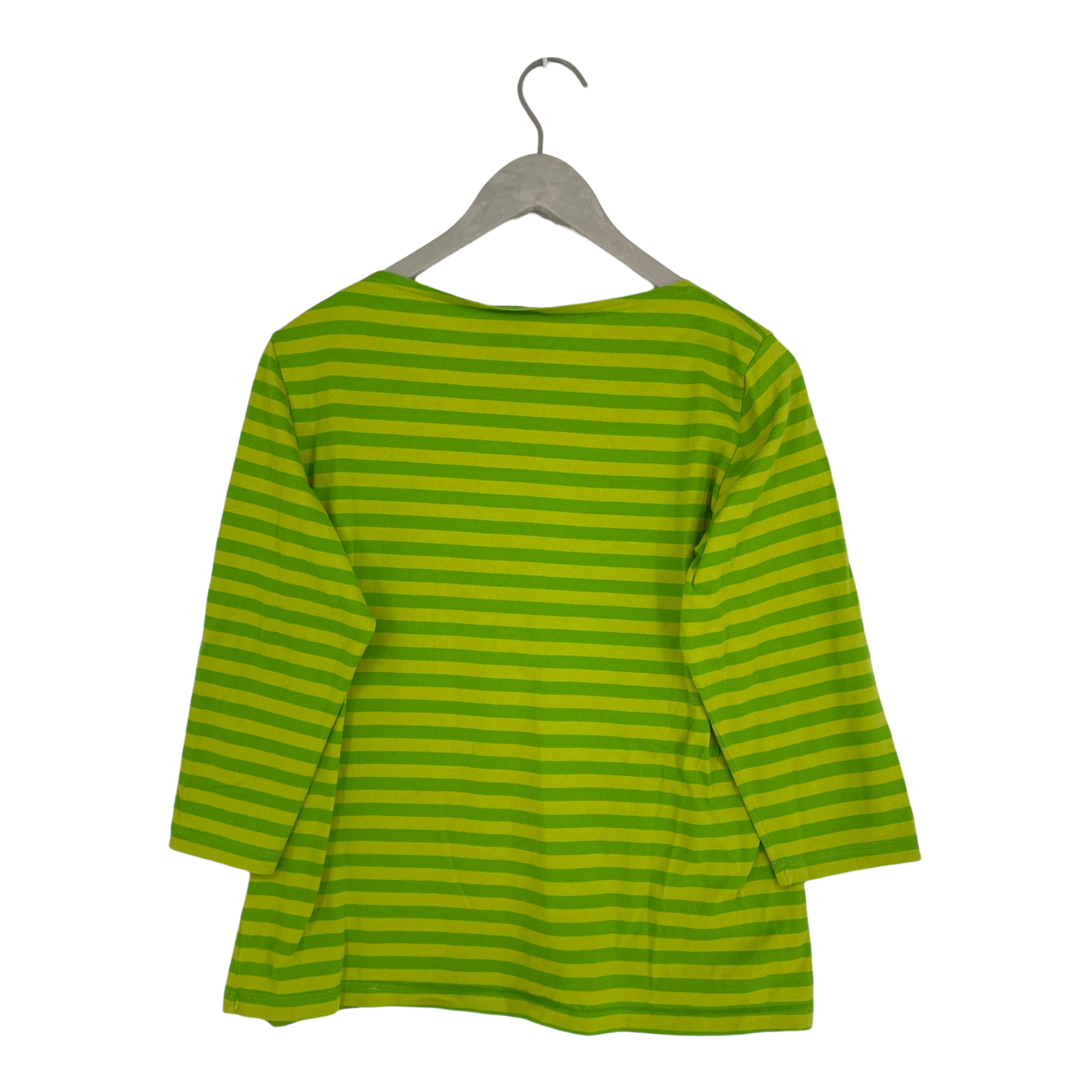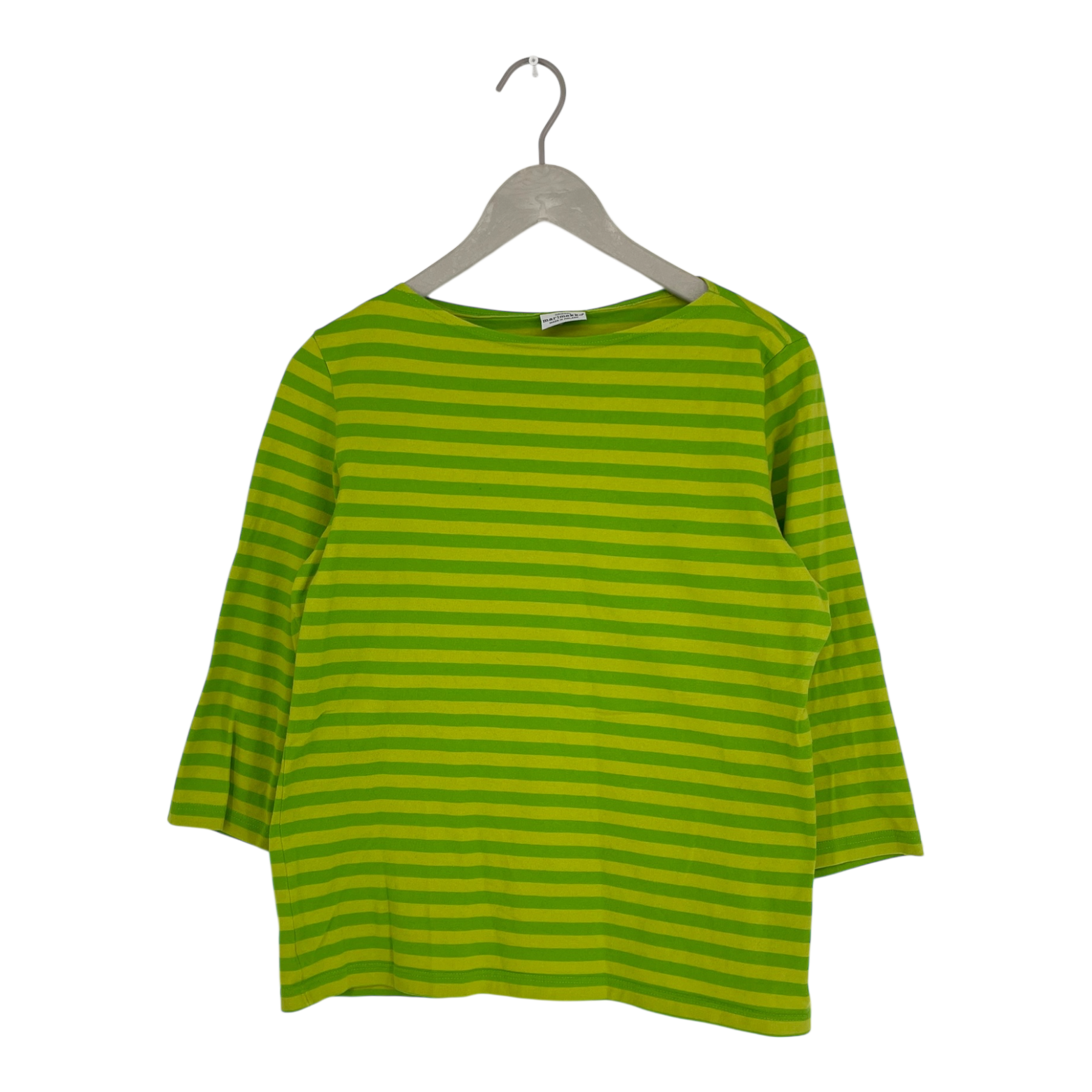 Marimekko 3/4 sleeve vintage shirt in the Tasaraita print. The fabric is lightly fluffed from wear.