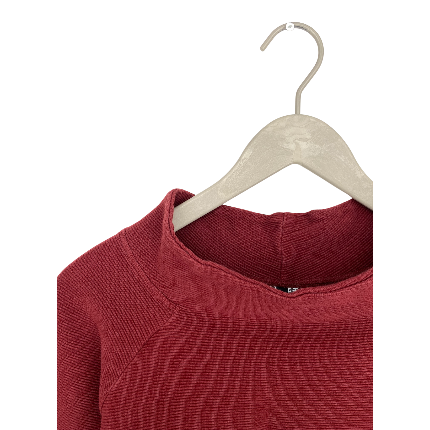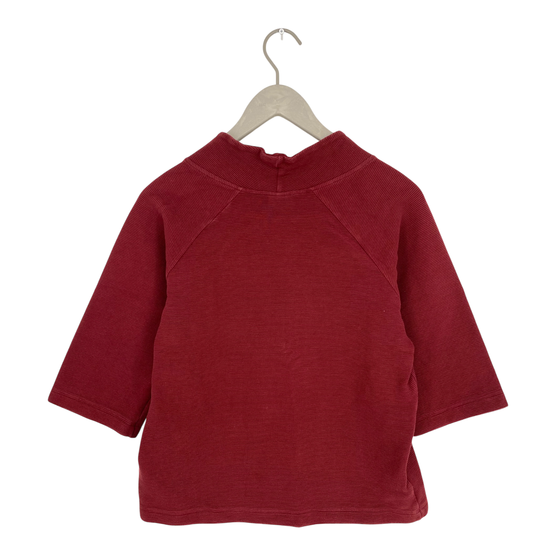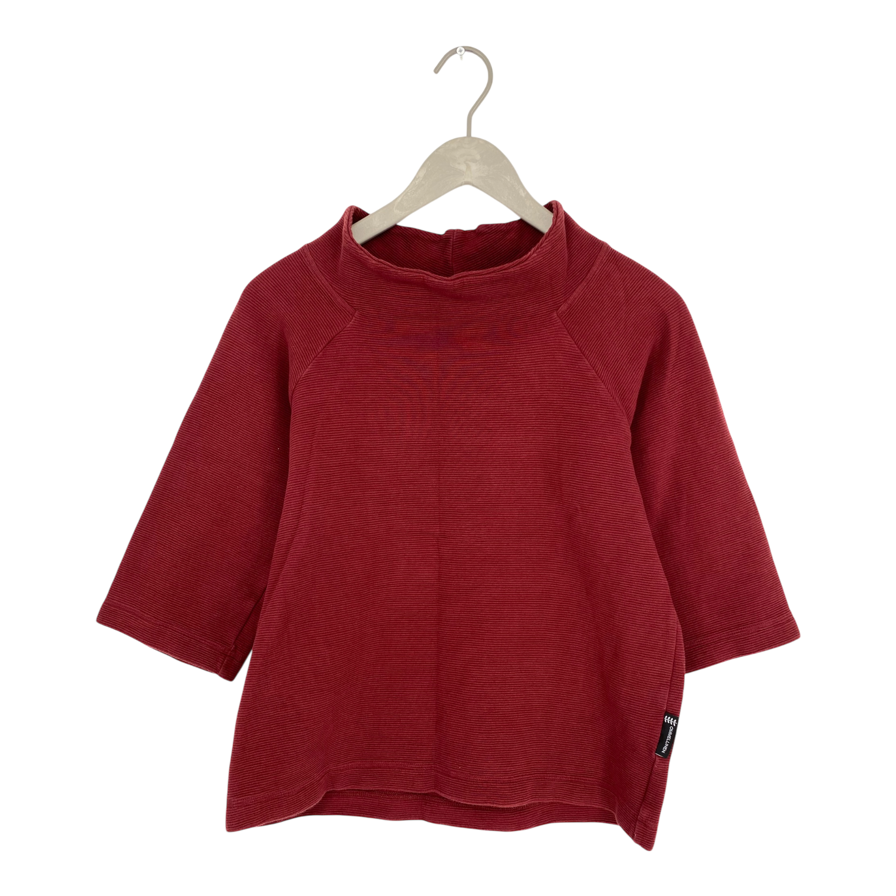 Ommellinen Särmä shirt with raised boat neck collar and 3/4 sleeves. Stripe textured surface.