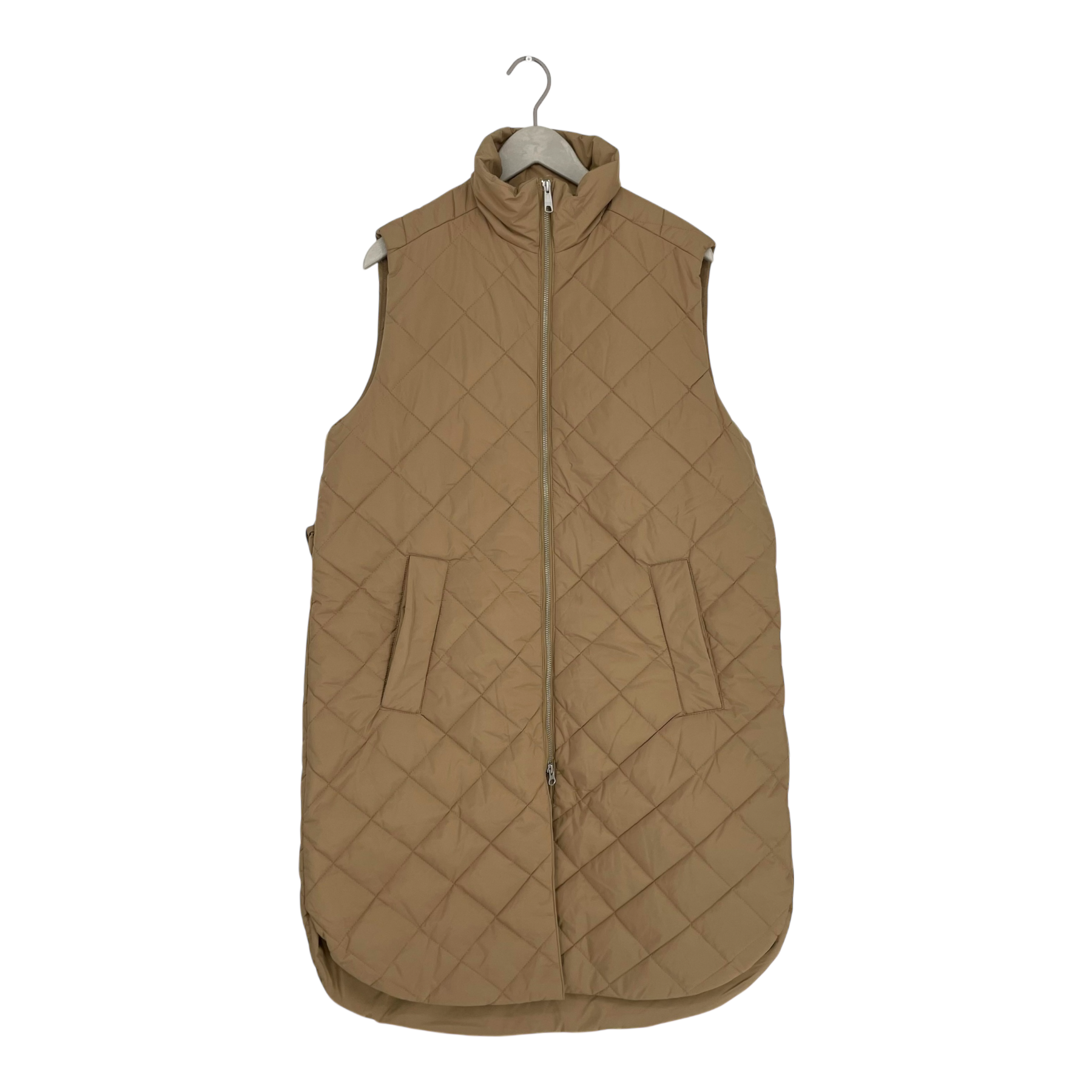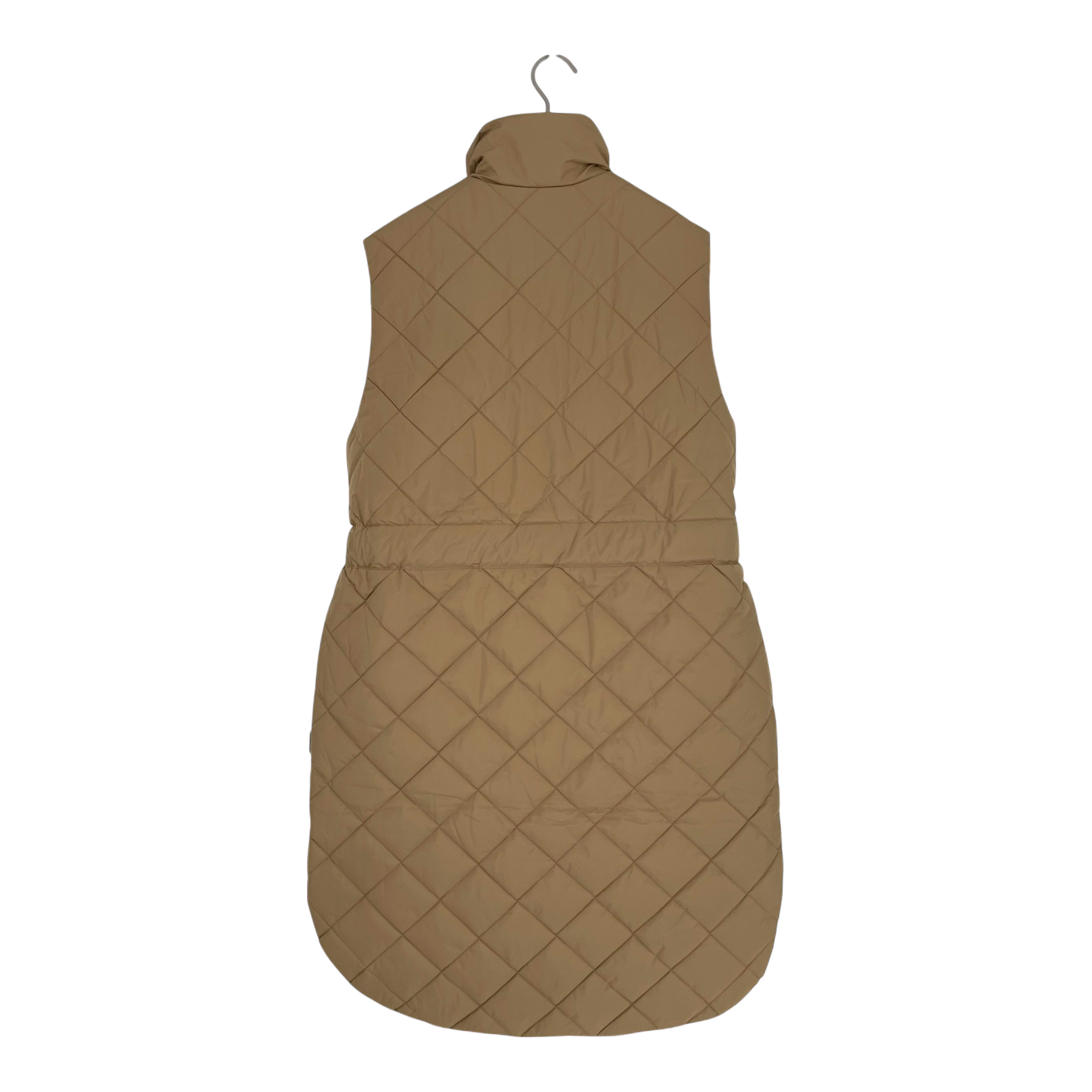 Makia Aura vest is a relaxed-fitting longer quilted vest with a stand-up collar and curved hem. The Aura Vest is finished with welt pockets and belt detail on the waist. For milder weather or layering.