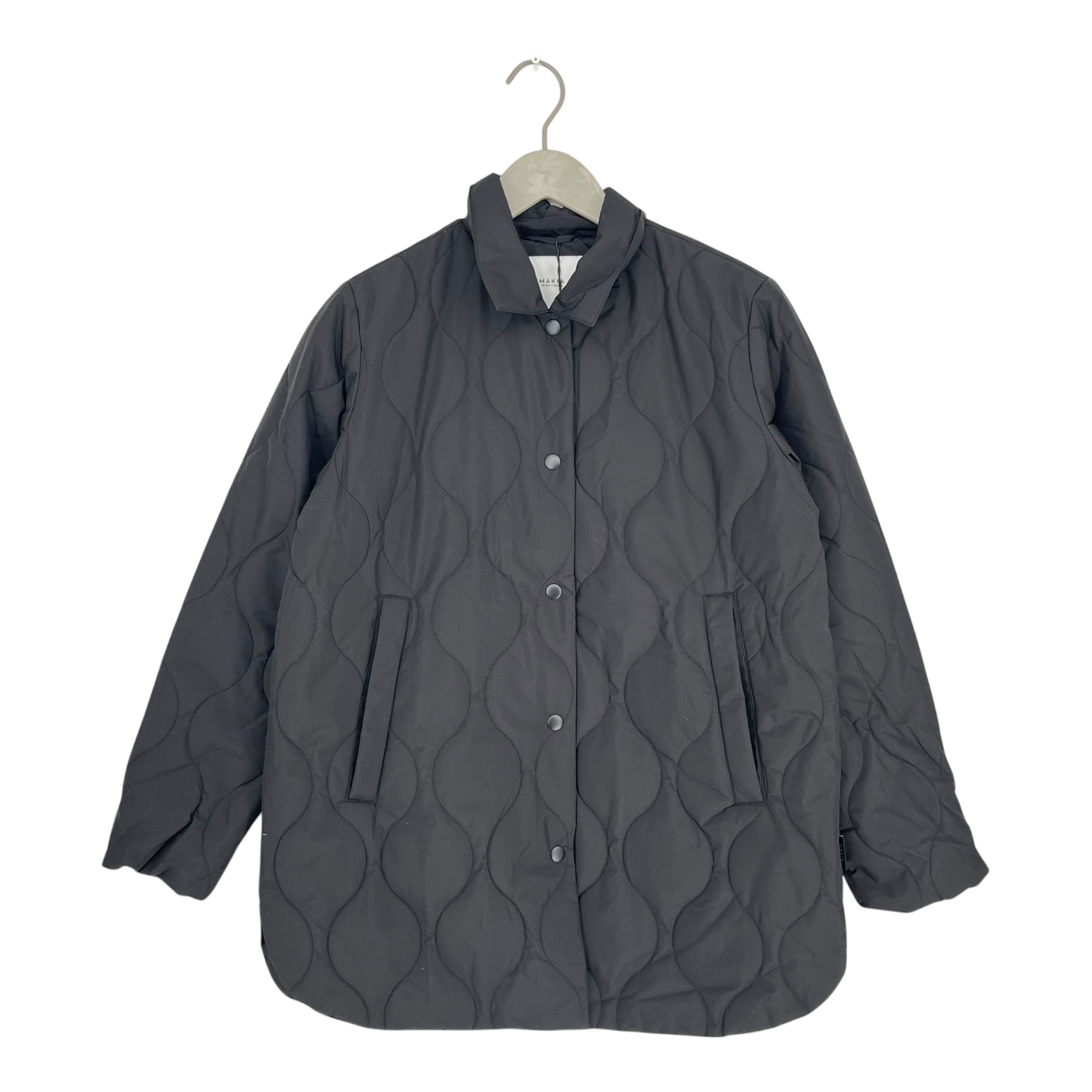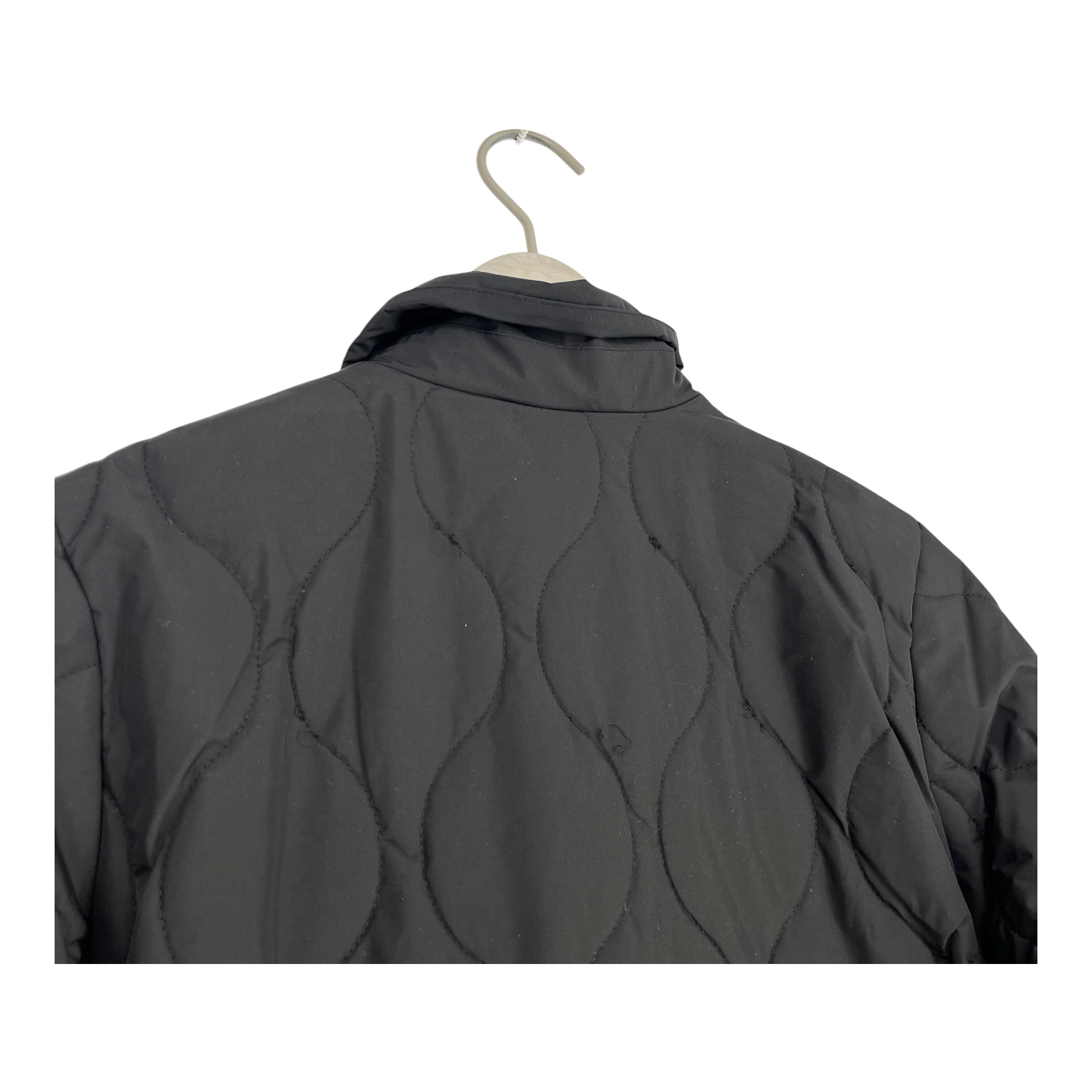 Makia lightweight Nita quilted jacket with snap buttons and side pockets. Some loose stitches on the back as shown.