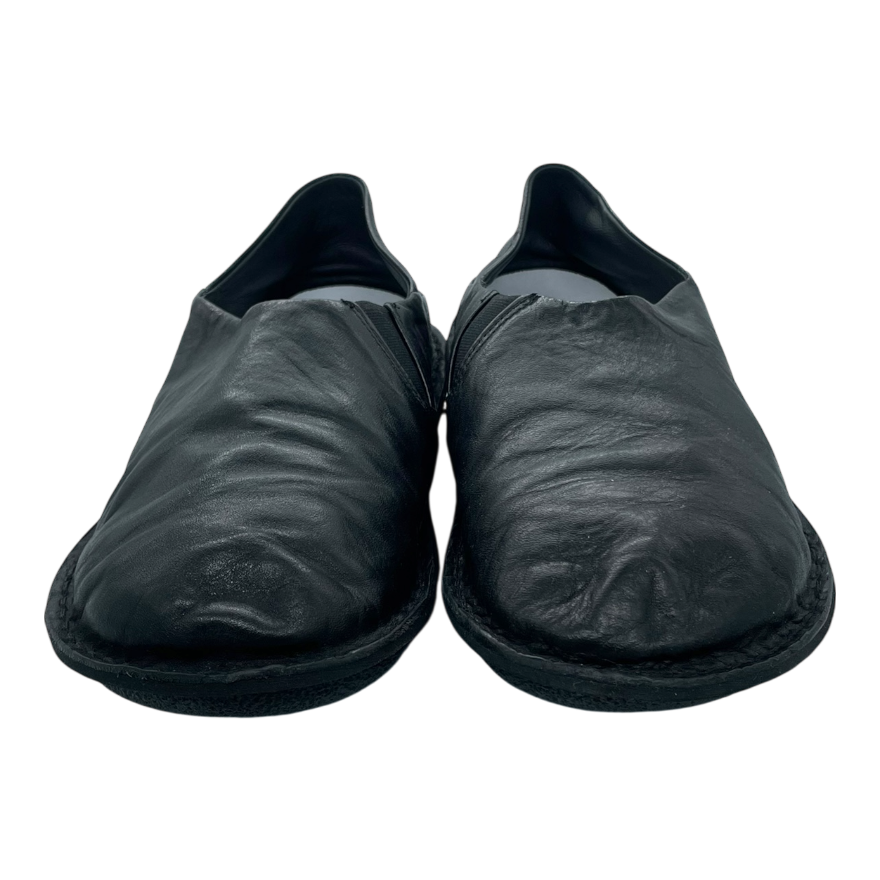 These shoes are in good overall condition, but the shape is slightly wrinkled.
