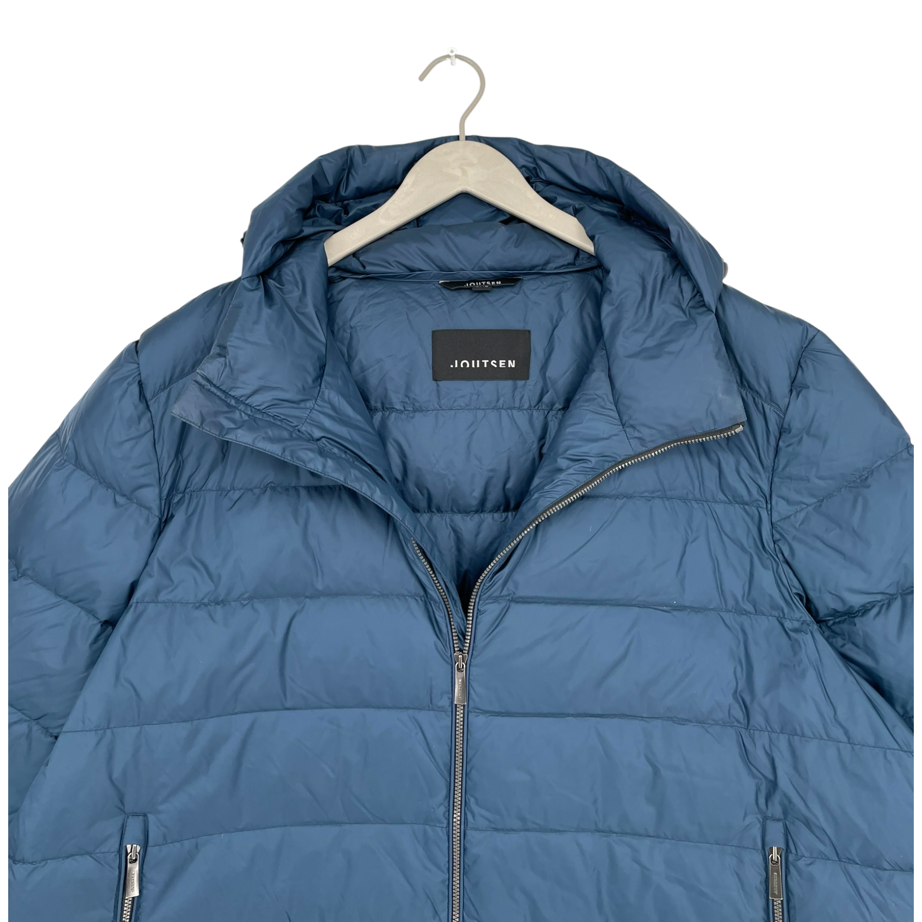 Joutsen Toiva jacket is a light down jacket that has a horizontal stitching. There is a snap button closure and two side pockets in the front.