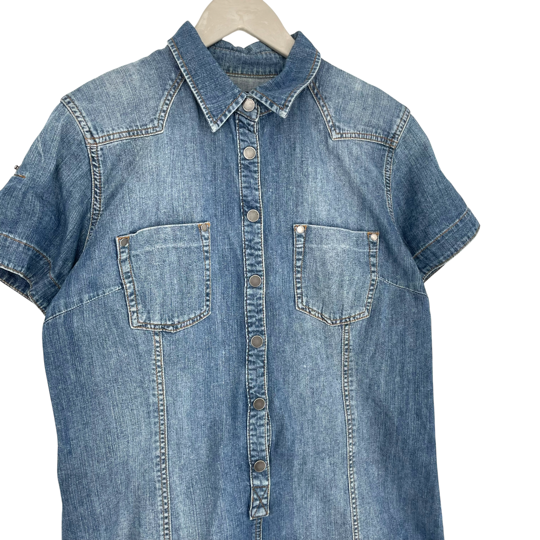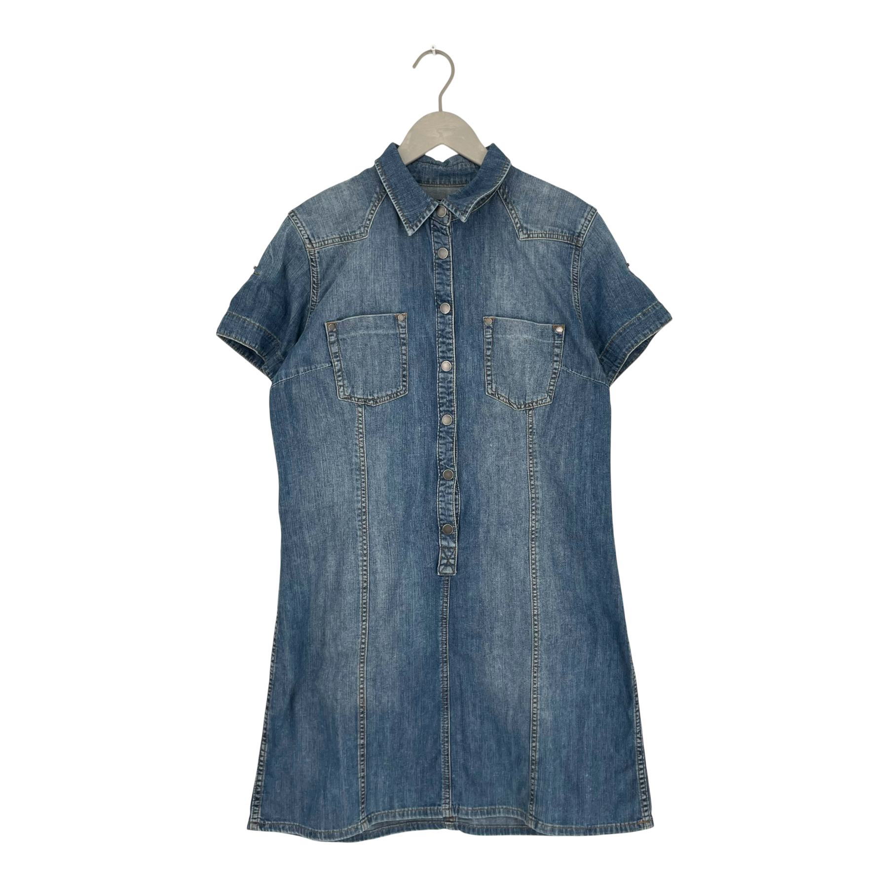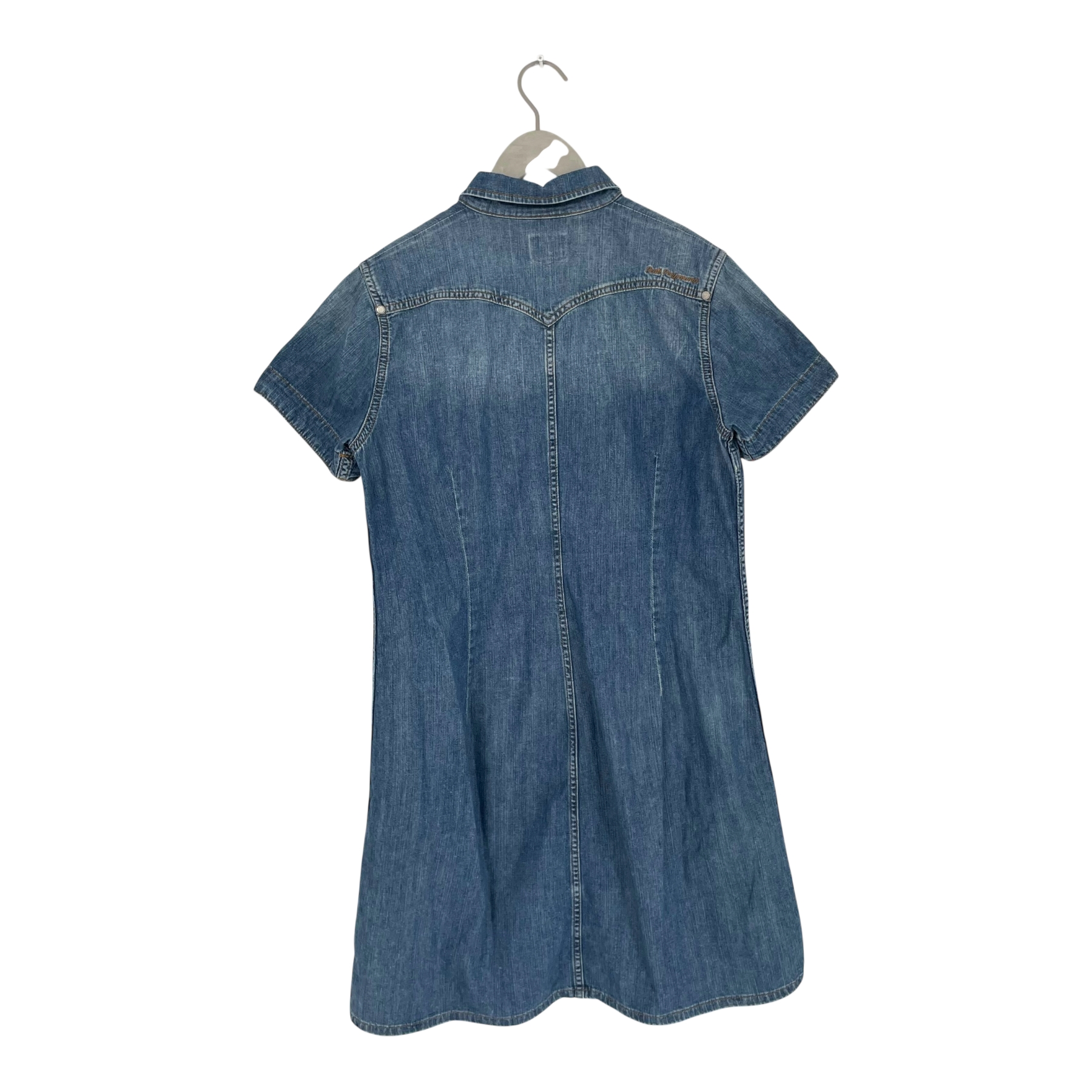 Peak Performance Lesley woman's t-shirt denim dress with pockets, button closure in the front and a collar.