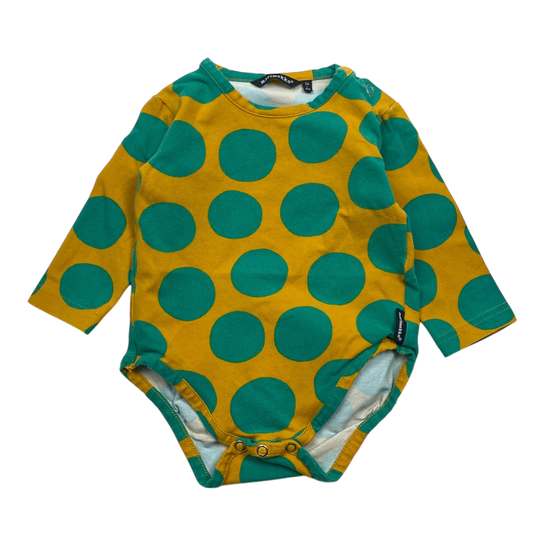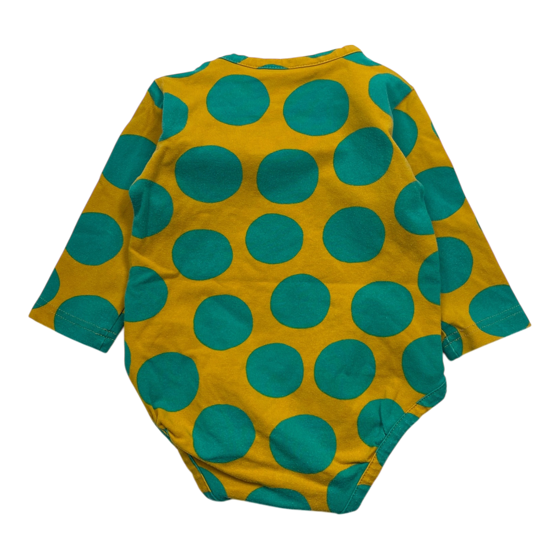 Marimekko long sleeve body in dots print. The original color has faded off.