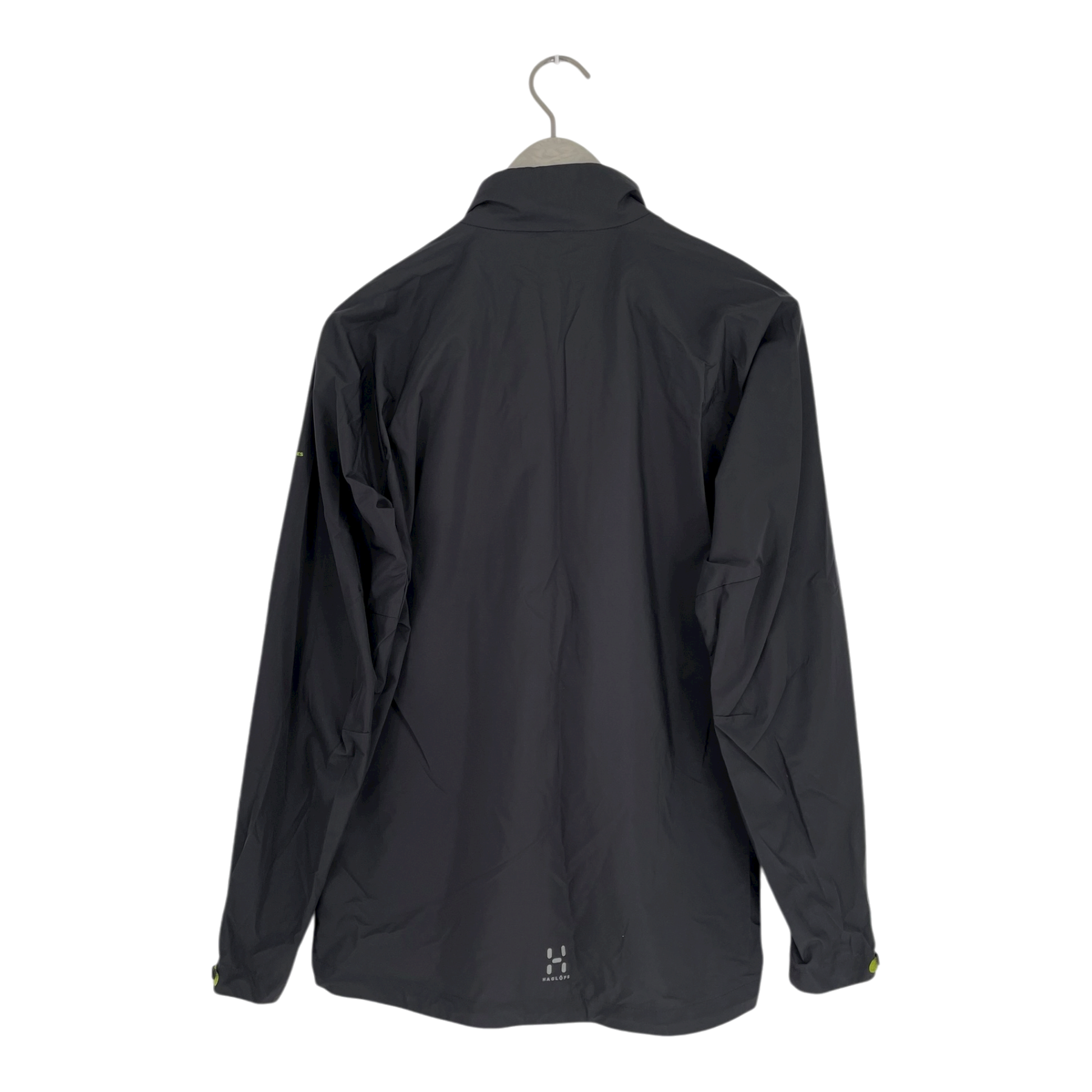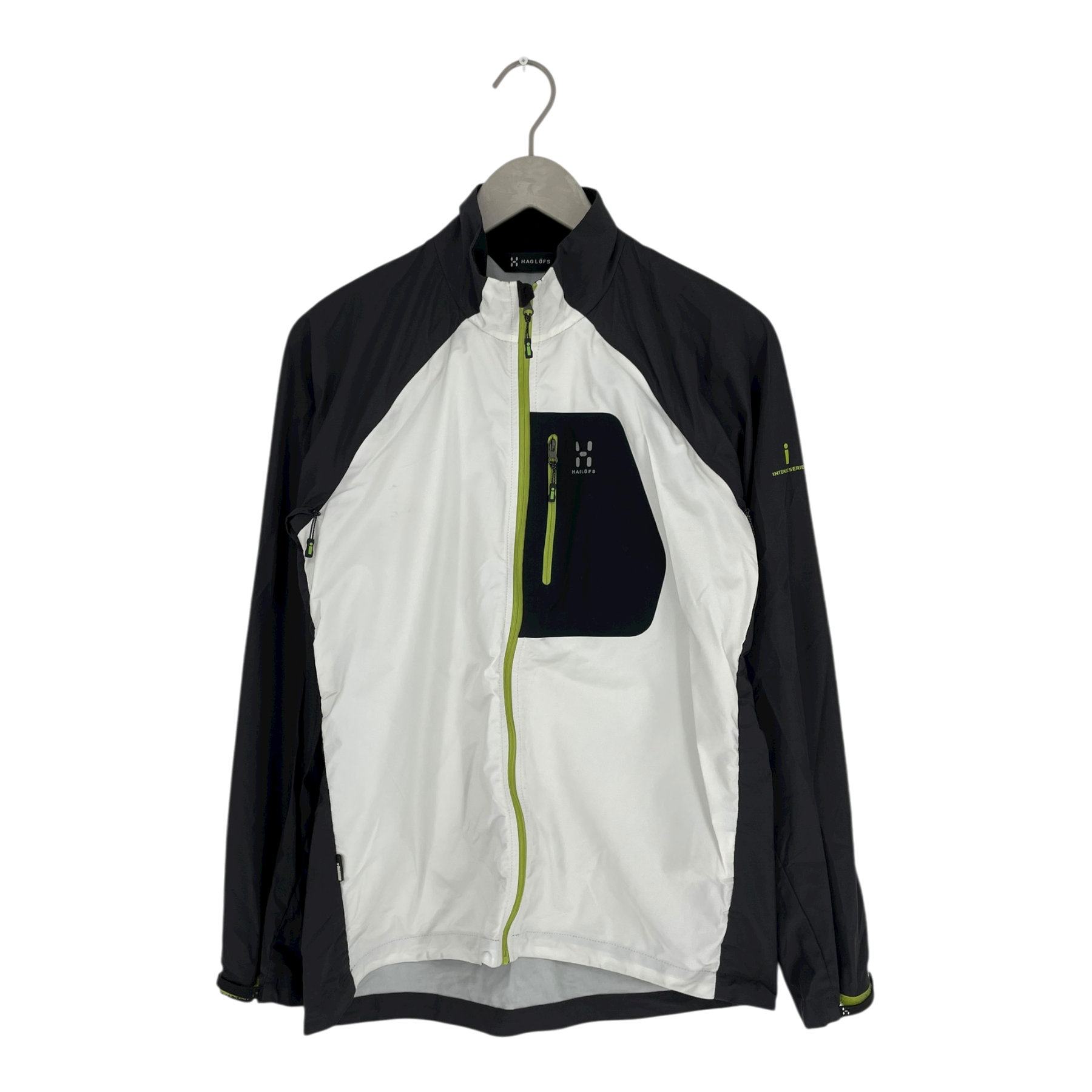 Haglöfs shell jacket from the Intense series. The item has a breast pocket, string tightening on hem and underarm ventilation. The jacket is ideal for outdoor running. The item has a few light stains, as shown in the pictures.