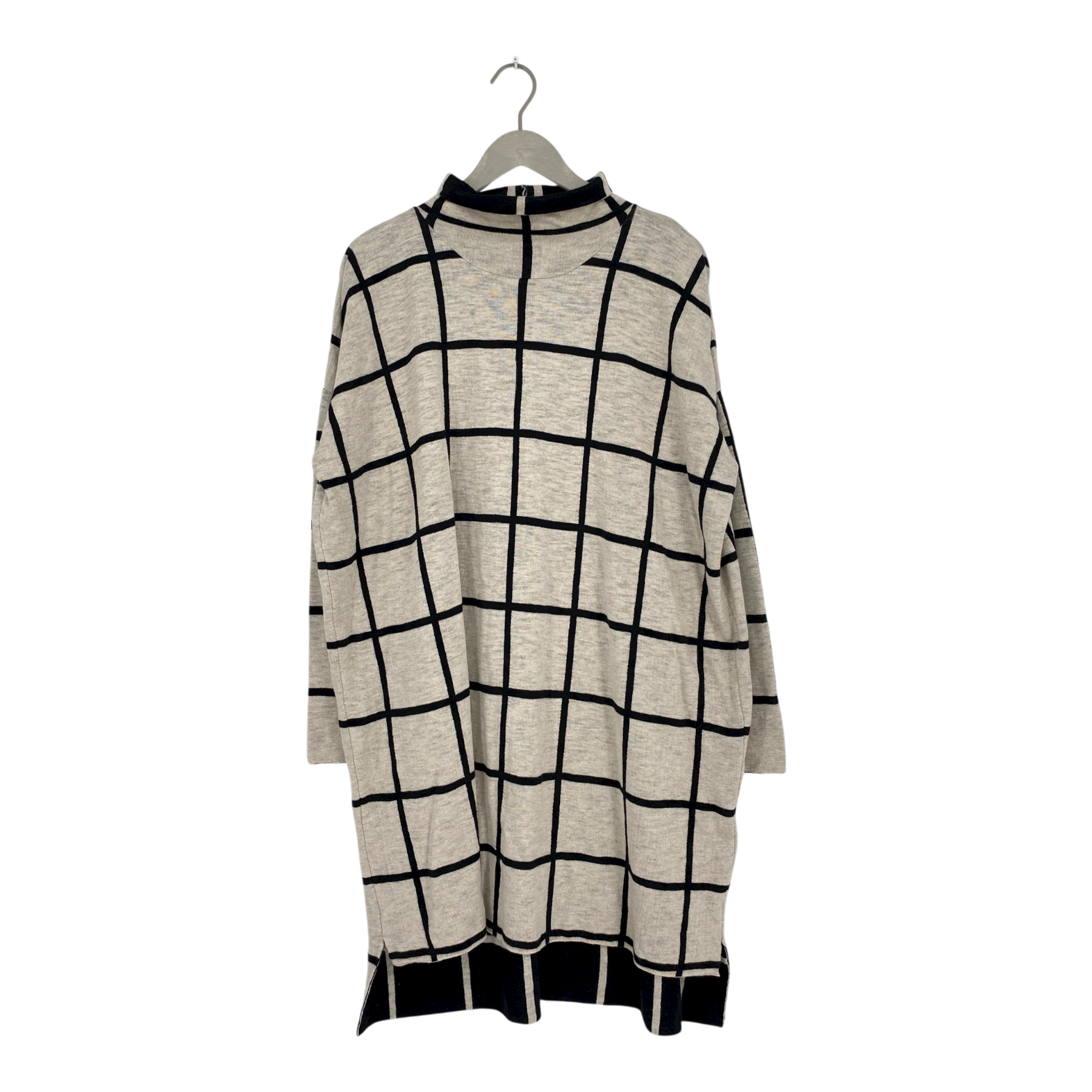Papu women's knitted dress. There are small slits on the hem and back of the dress is slightly longer.