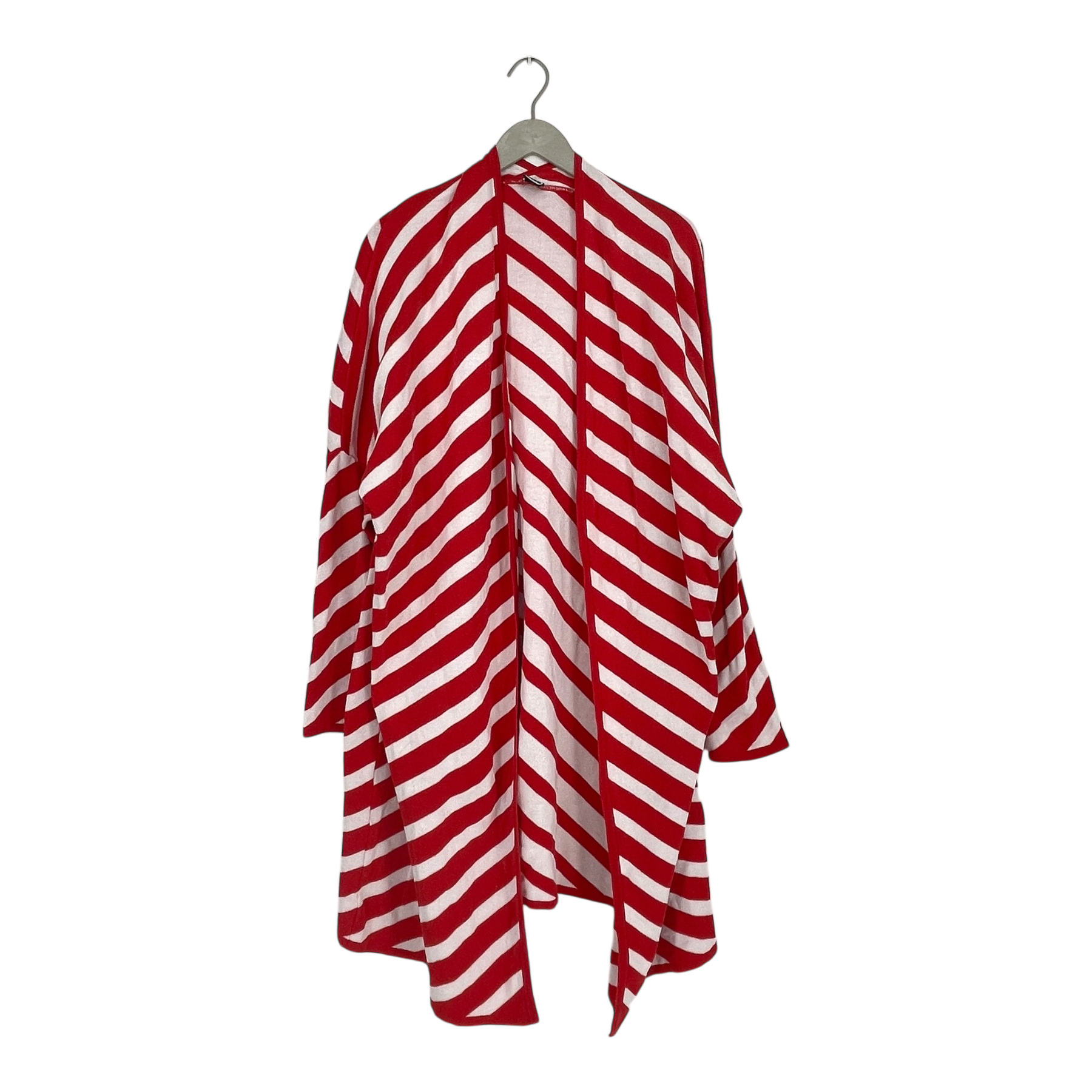 Papu women's long split cardigan with dropped shoulders and no pockets. There is no size tag, but the size most likely corresponds to a size M.