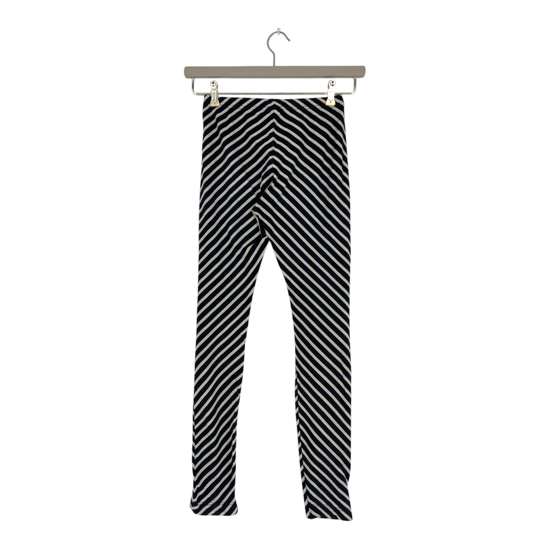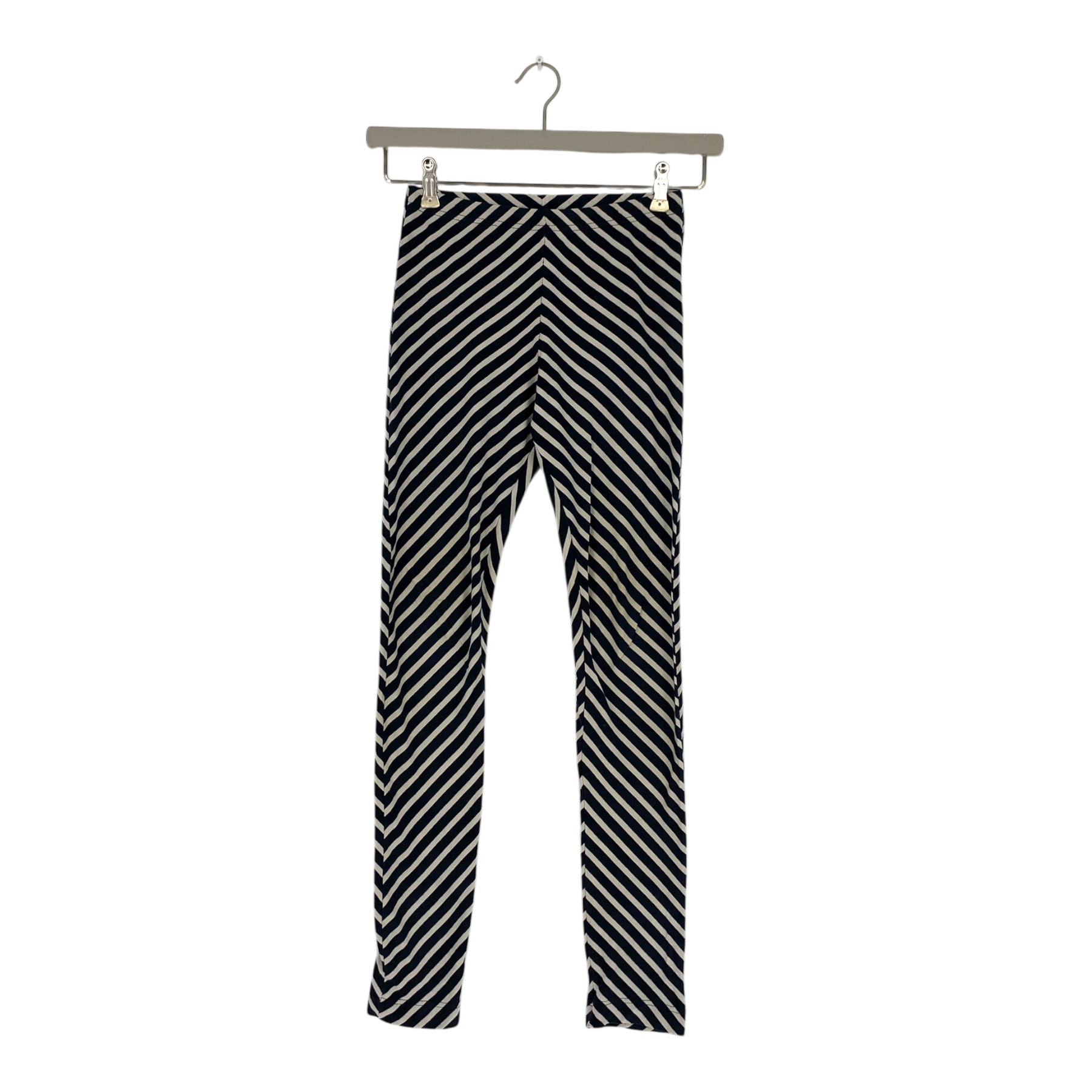 Papu women's stripe leggings. The item shows some sign of wear on the surface and the give of the fabric.