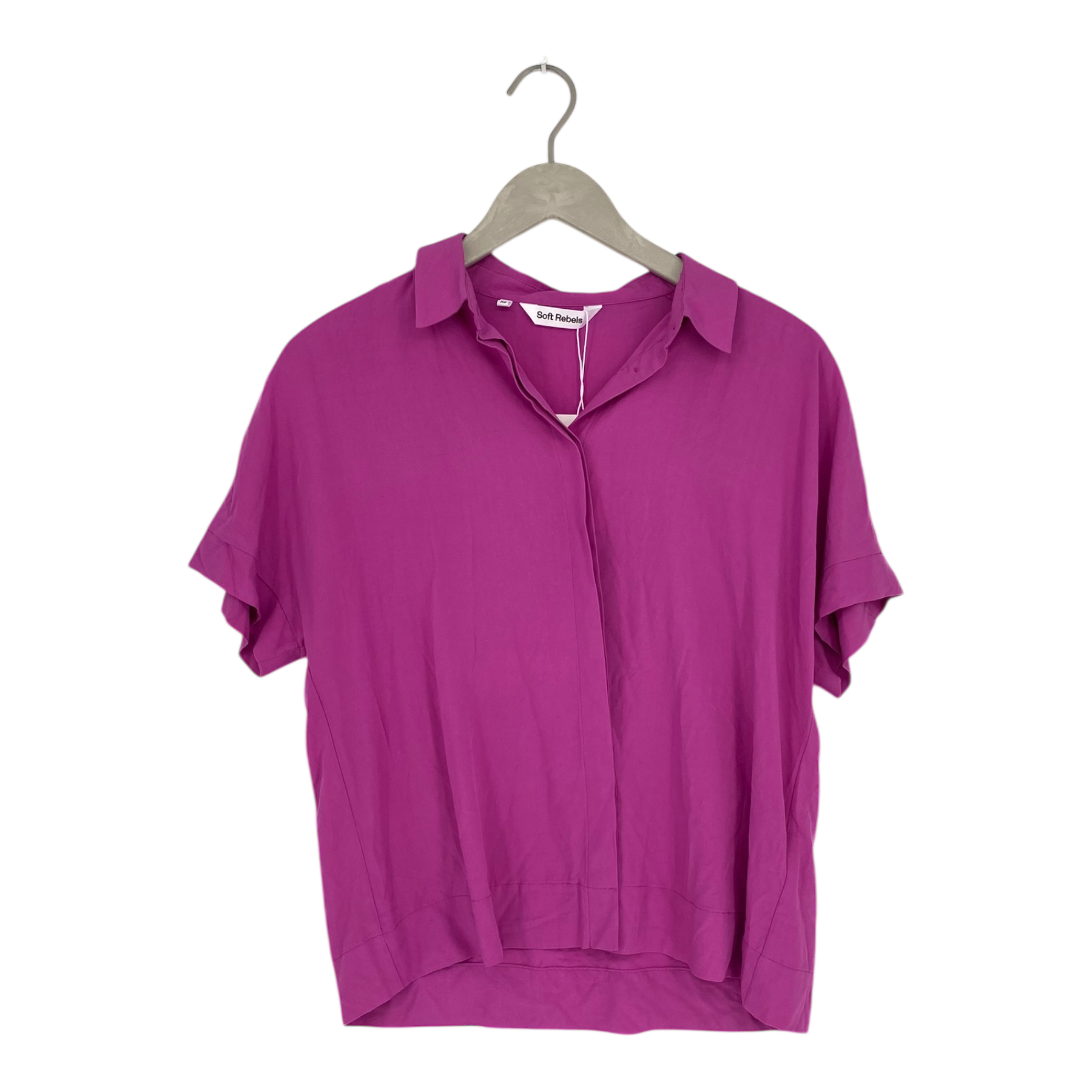 Soft Rebels Freedom blouse with collar. Button closure and curved hemline which is slightly longer from the back. This item is a sample.