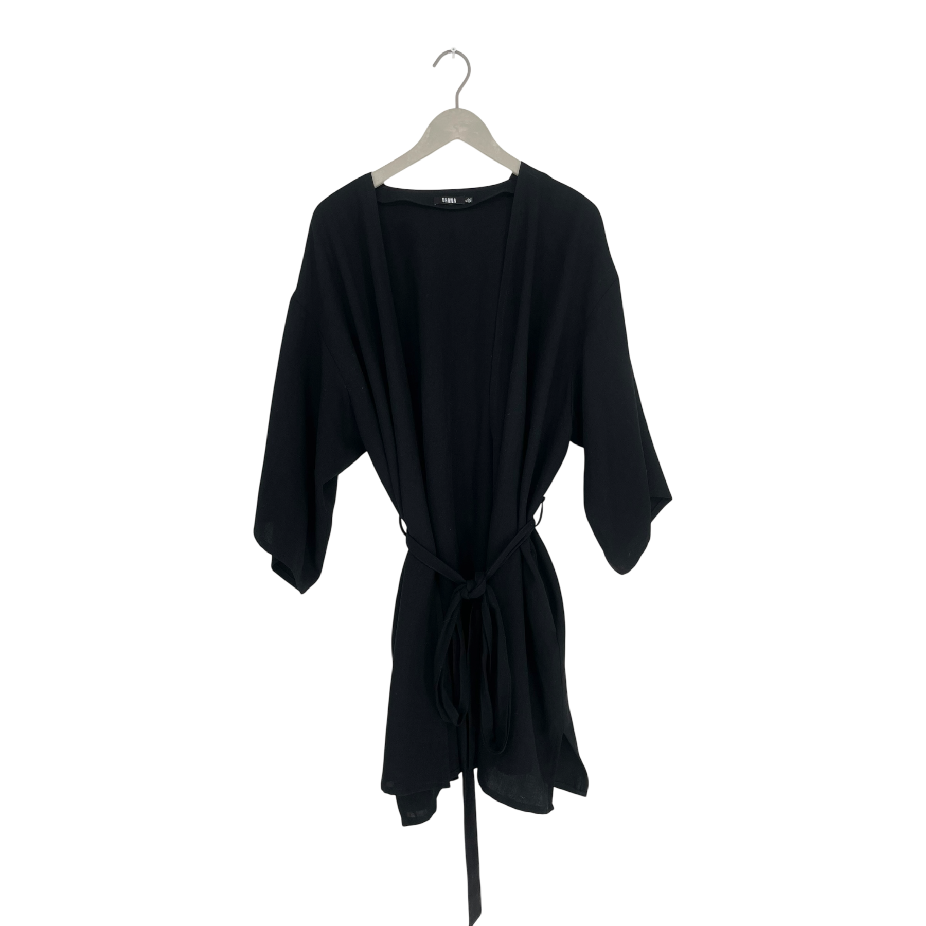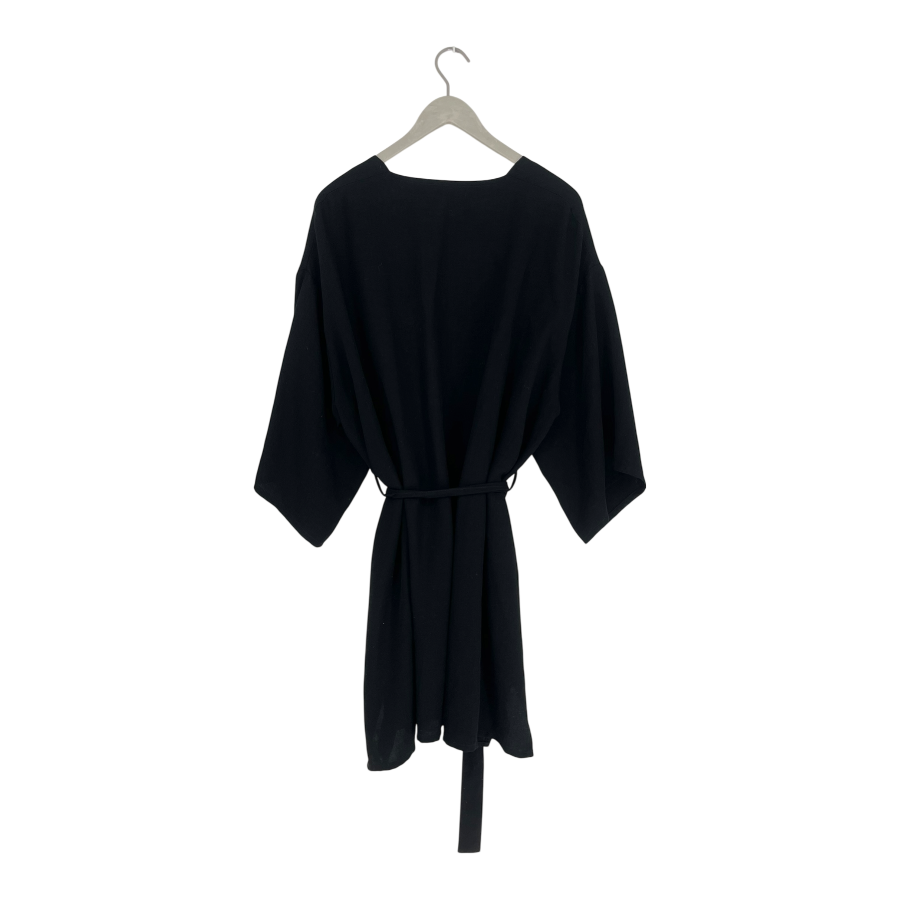 Uhana women's kimono in black. The kimono has half-length sleeves, pockets on the sides and a detachable belt.