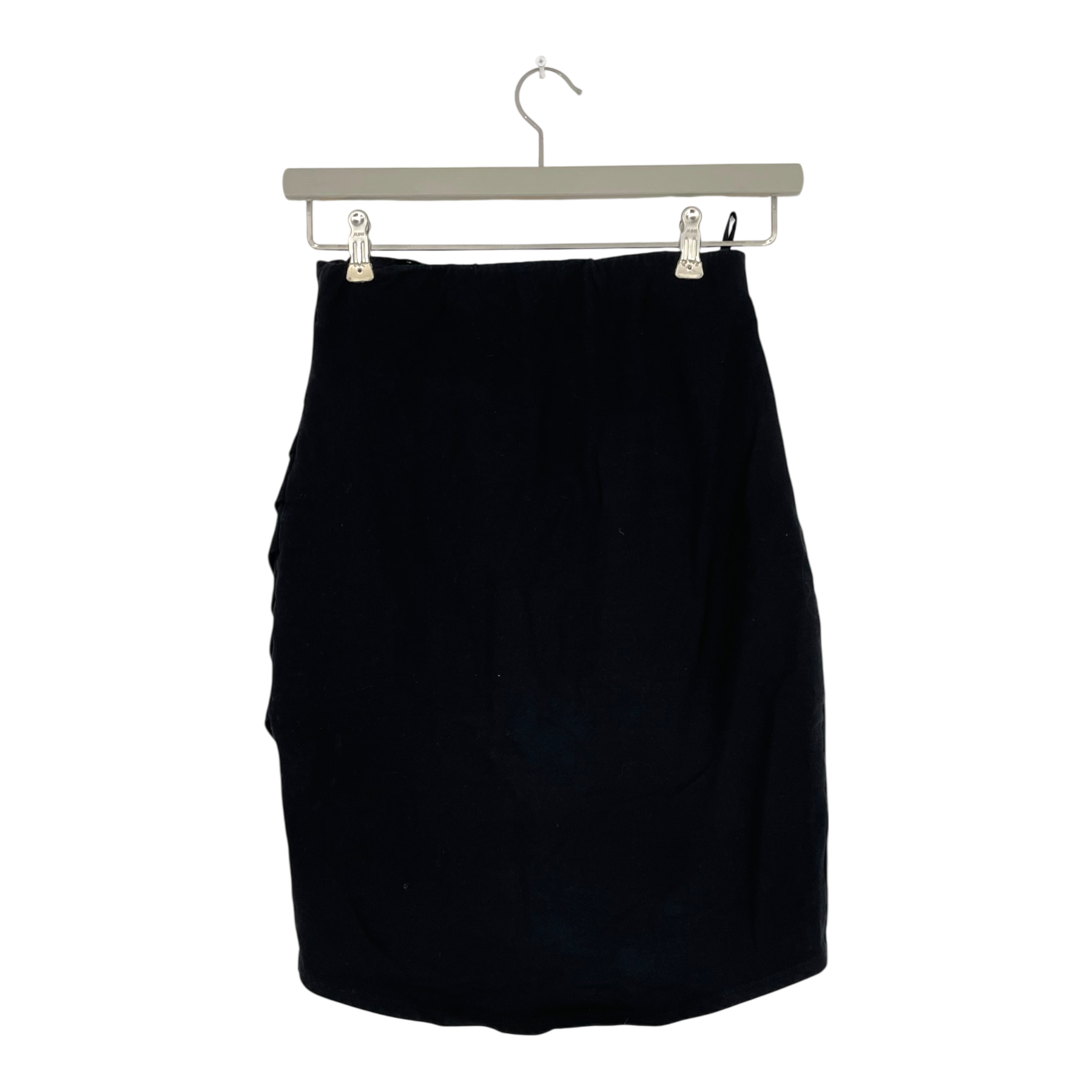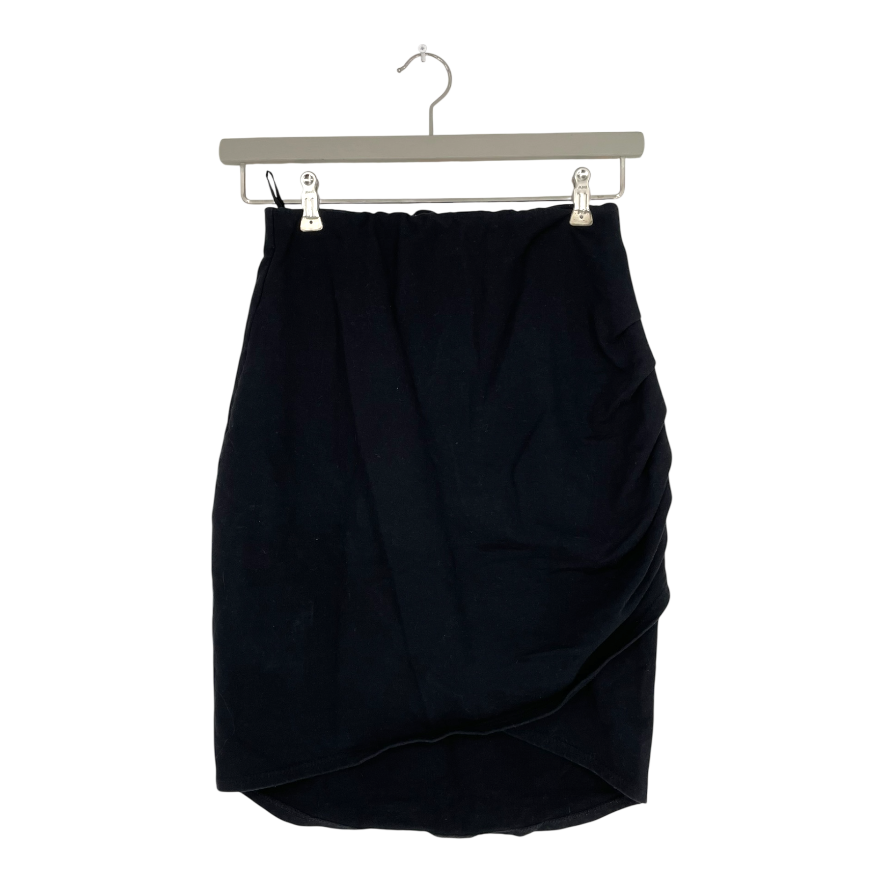 Uhana women's mini/ midi/knee length wrap skirt with an elastic waist band. The item has a few light stains and has somewhat lost its shape.