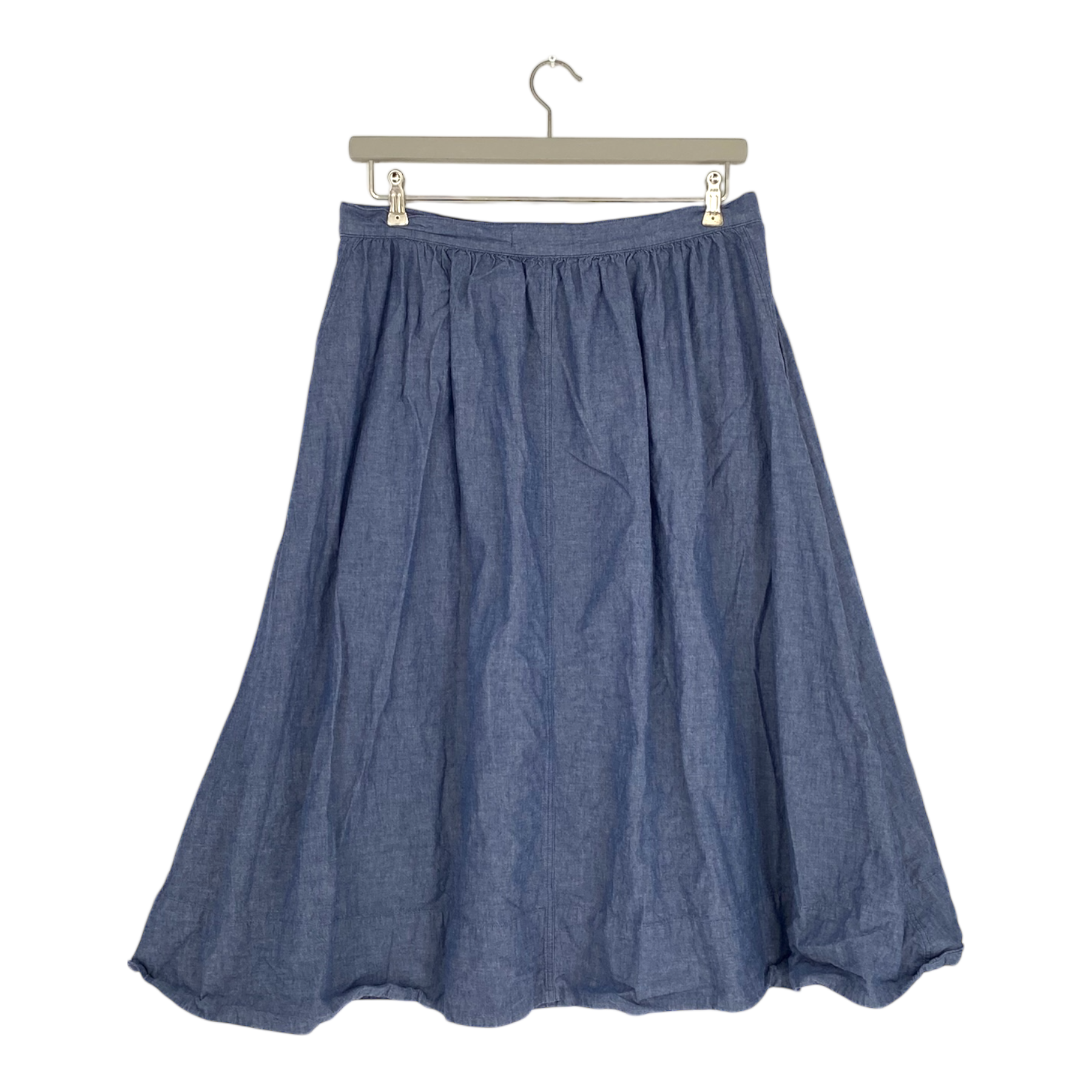 Kings of Indigo Yetta jean skirt with buttons on the front.
