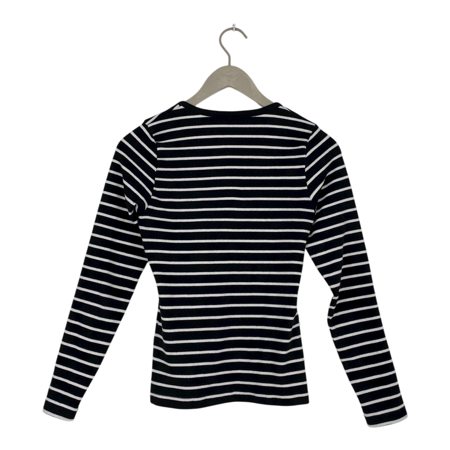 Riva Clothing ribbed shirt in striped print. The shirt has a rounded neck and long-sleeves.