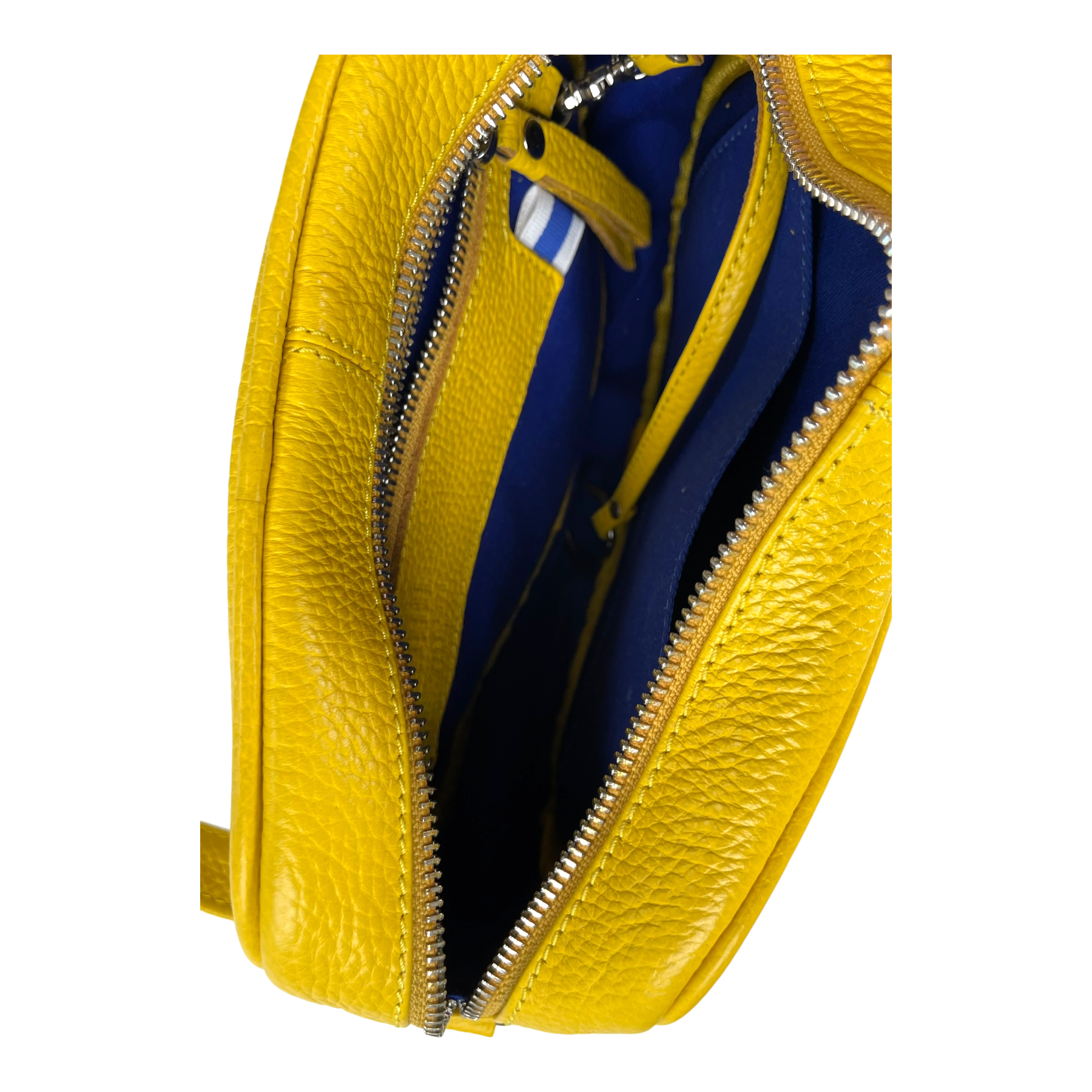 Lumi East-West crossbody bag is made out of full grain, trough-dyed cow leather with a cotton twill lining and silver hardware. The bag has a zipper closure, an inside zipper pocket, inside slash pocket, and a key fob. One detachable long strap. Length can be adjusted.