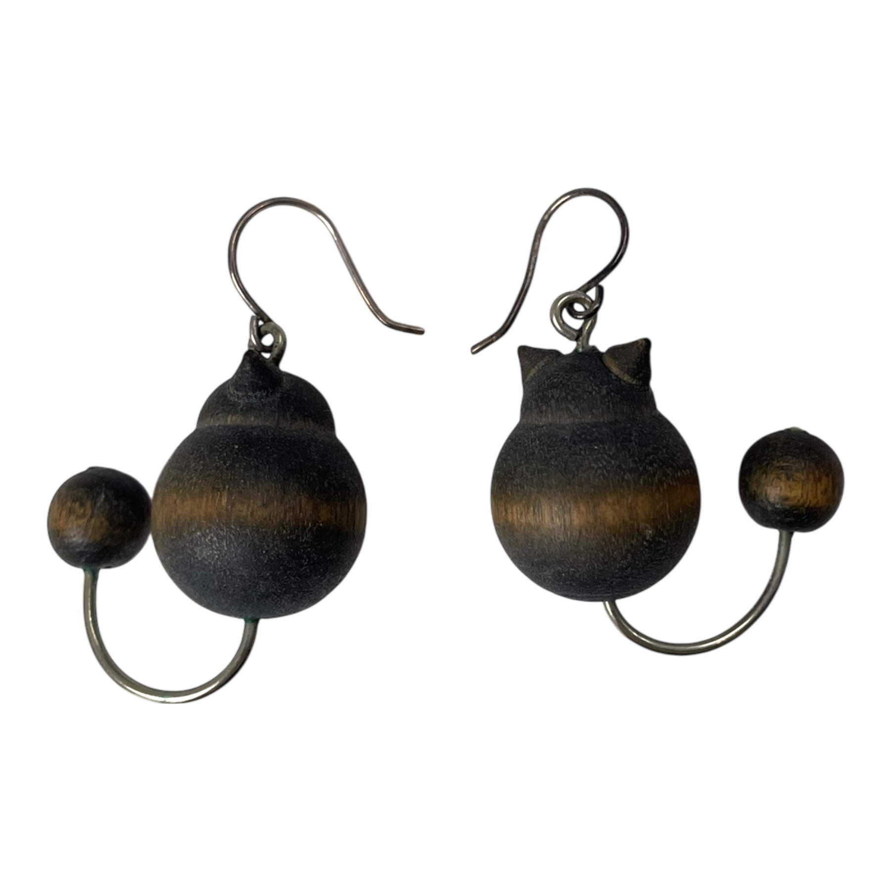 Aarikka cat earrings. Bead parts are made of wood. Hooks are silver. Aarikka jewelry are nickelfree.