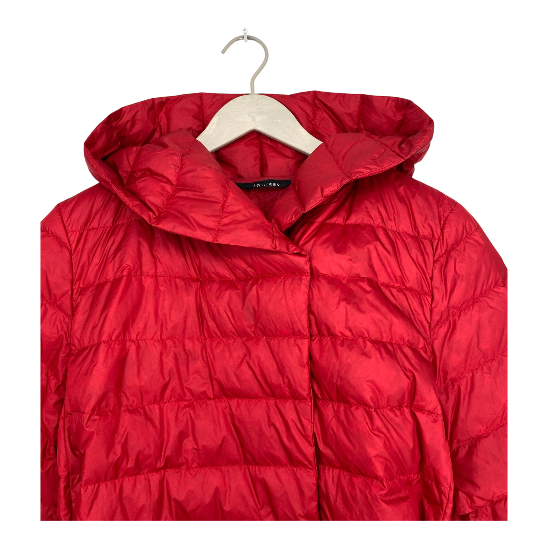 Joutsen Vaula jacket is a lightweight down jacket. There is snap button closure and two side sealed pockets. This item comes with a belt that can be adjusted and removed for a better fit.