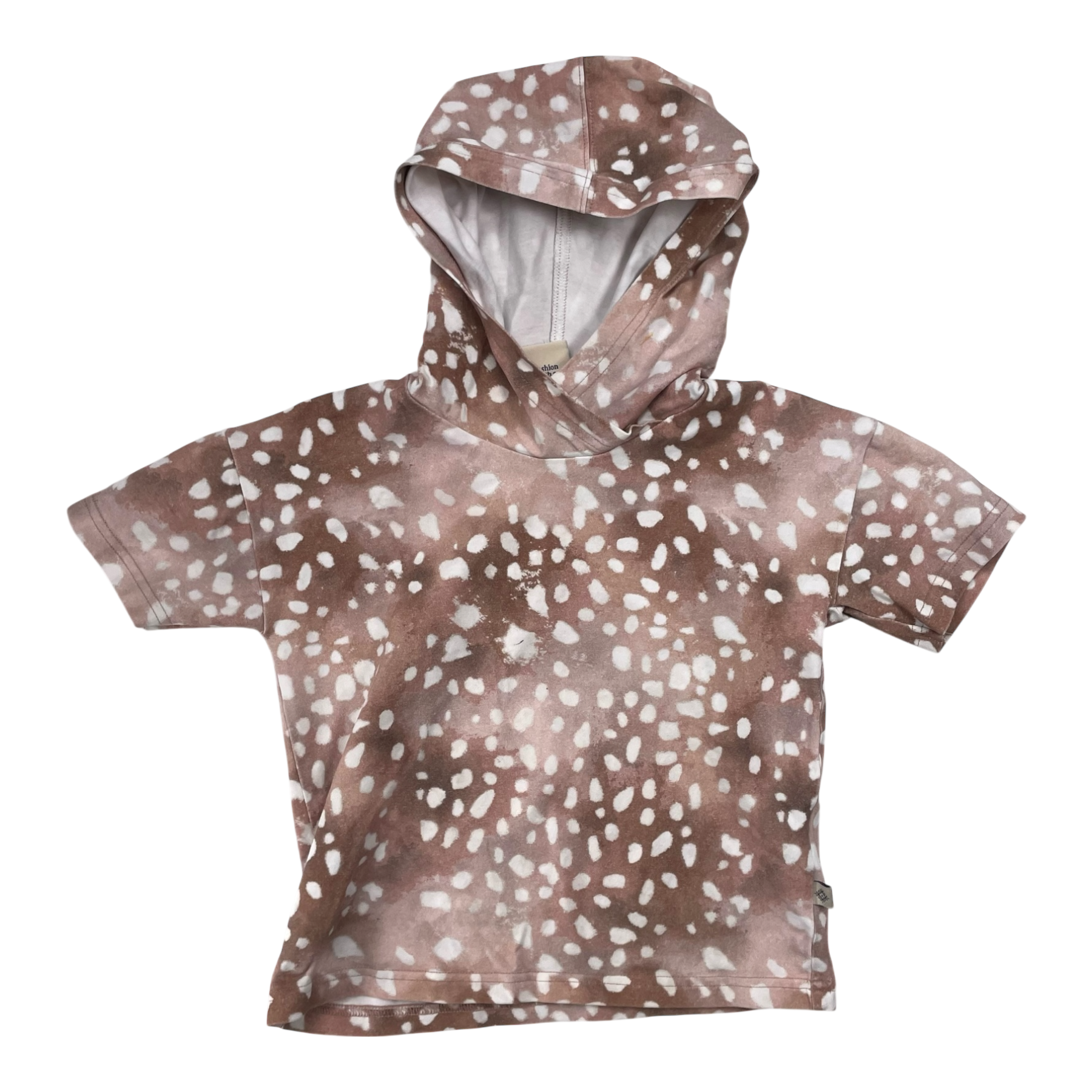 Kaiko t-shirt with a hood in copper bambi print.