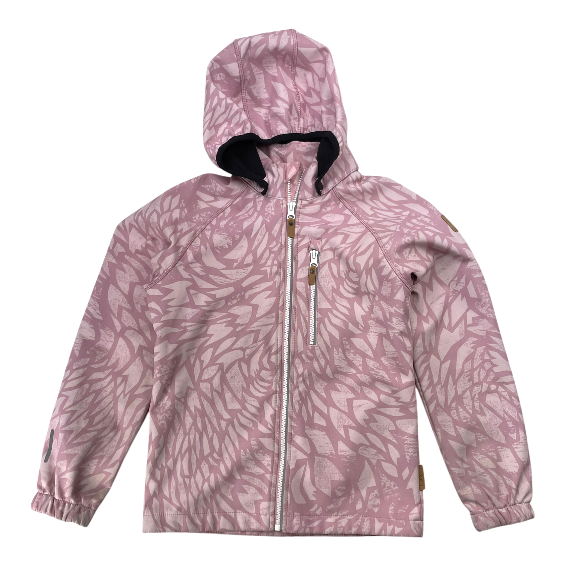 Reima Vantti softshell midseason jacket with zip pocket and zip closure. In this item the hood is missing. The material is originally waterproof up to 10,000mm water column and windproof. The soft fleece on the reverse not only feels nice against the skin but warms too.