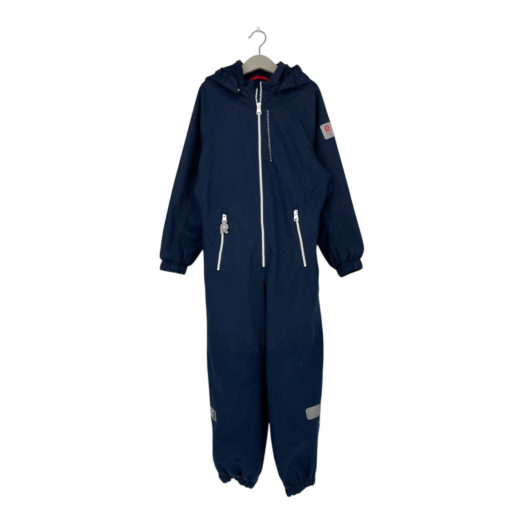 Reima Kapelli midseason overall is originally waterproof up to 10 000mm water column. All seams are sealed waterproof and material is very durable. The overall has zipper pockets and a detachable hood.