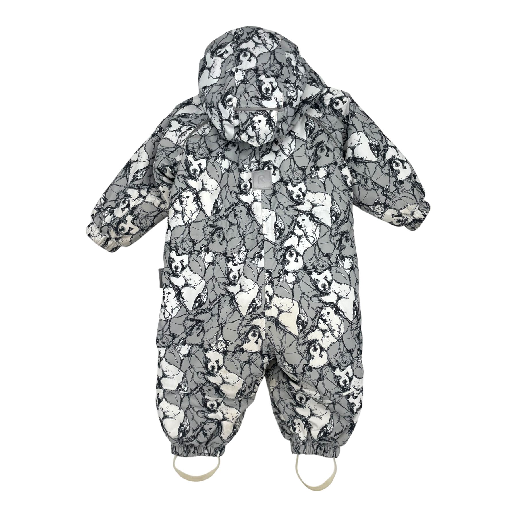 Reima Langnes winter overall is a warm toddler snowsuit, made with recycled materials. The overall is fully waterproof, breathable, and durable with detachable and adjustable hood and Durable silicone foot loops. All the seams have been sealed waterproof, and the seat is insulated.
