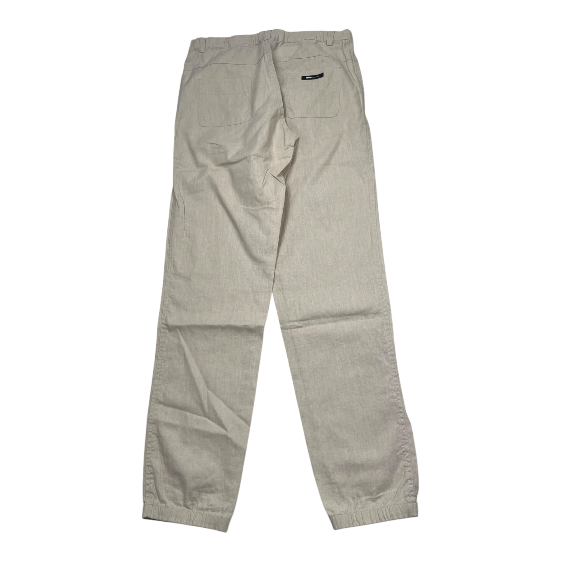 Reima Kasvukausi hemp blend pants with side pockets, adjustable waist, and two pockets on the back.