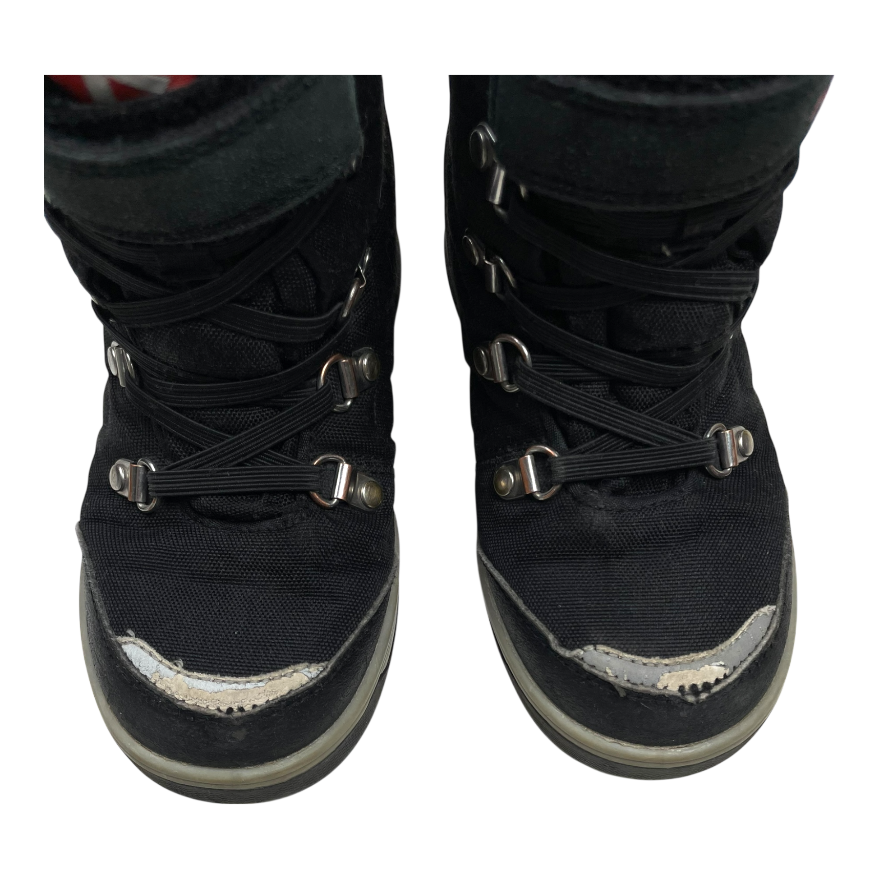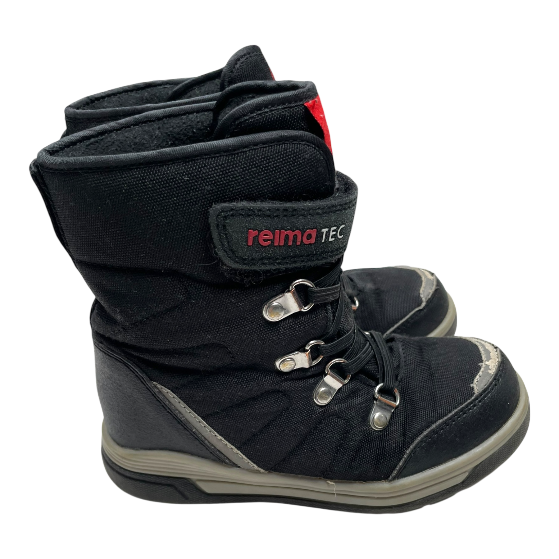 Reima kids' Quicker winter boots are originally waterproof. The fleece/wool mix lining ensures warmth and comfort. The shoes has signs of use as seen in the last picture.