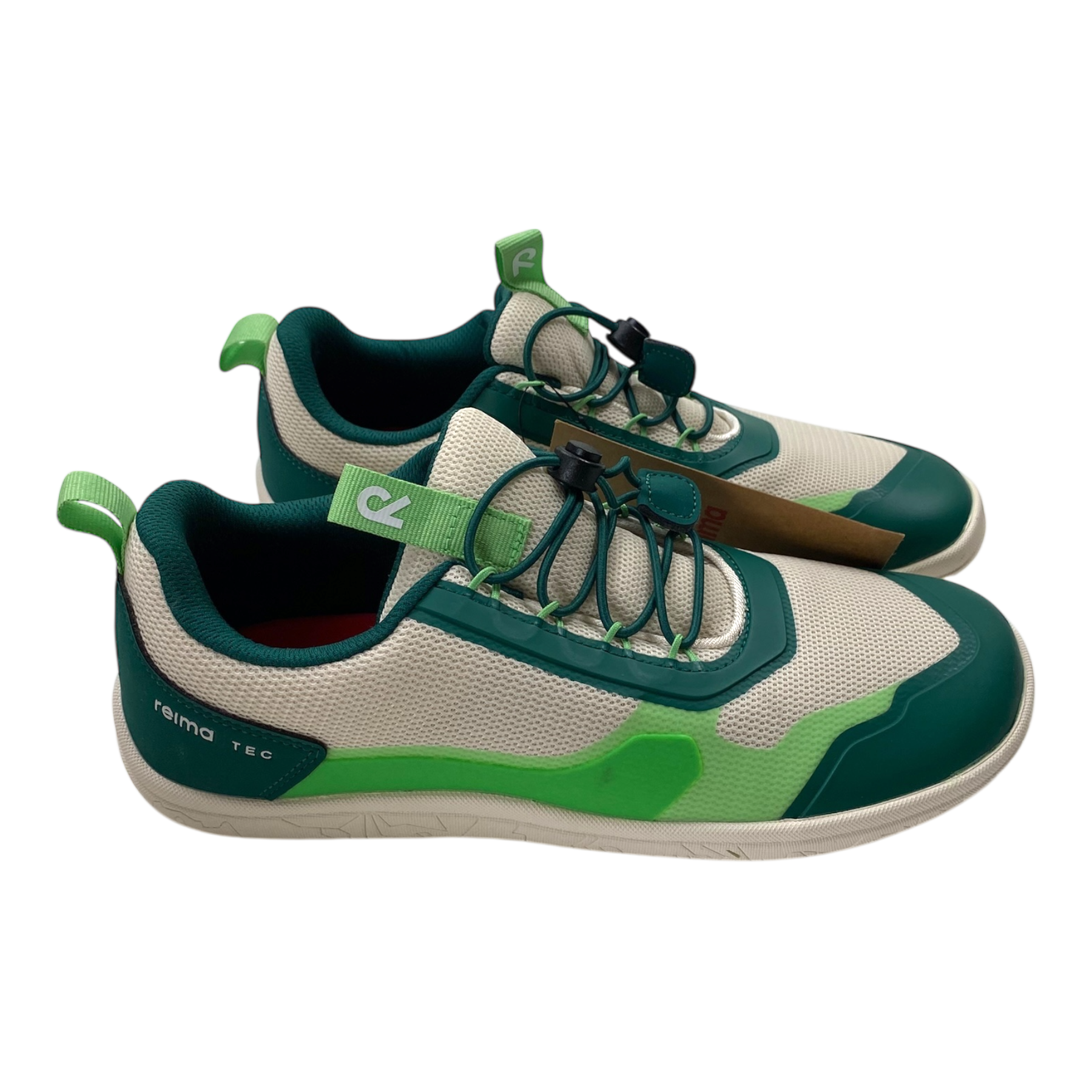 Reima Tallustelu barefoot sneakers with elastic lacing for fast and easy pull-on. The material is originally waterproof, and all the seams are sealed. Shoes have zero heel drop, the sole is flexible, and it has extra room for toes. Comes in the original box, excellent condition and tags still attached.