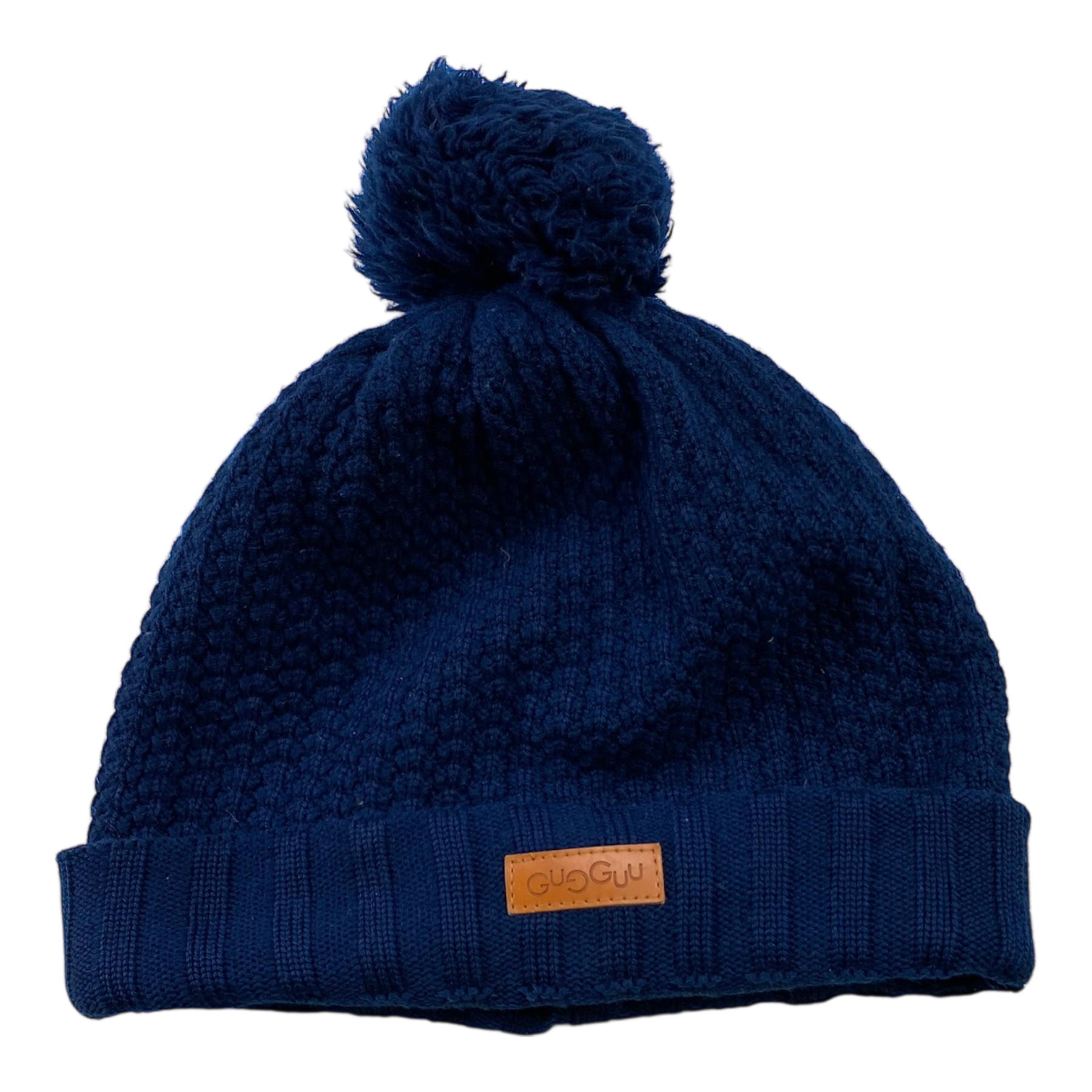 Gugguu merino wool beanie with one pom. The material has fluffed in use.