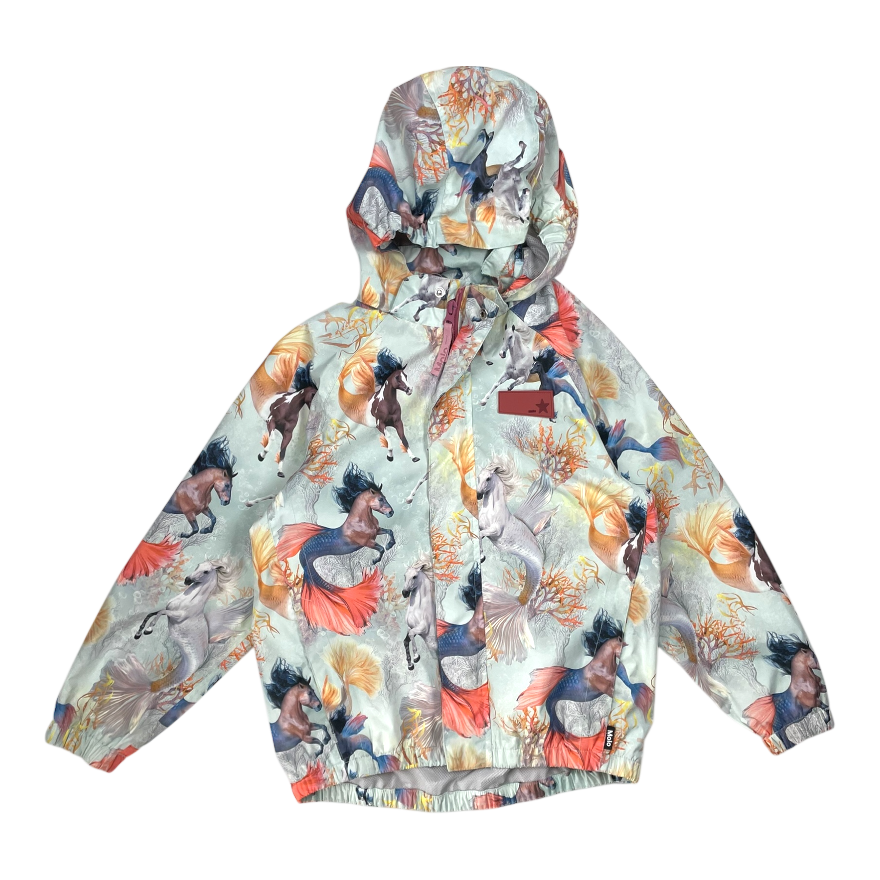 Molo mid season jacket in Horses of the sea -print with pockets and a reflective star on the back. The jacket is originally waterproof, windproof and breathable.