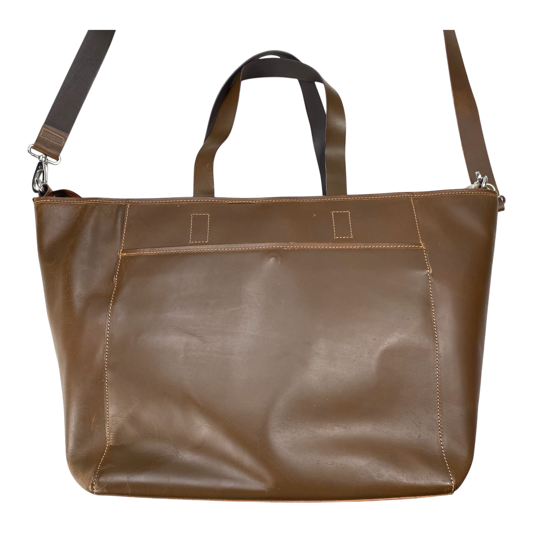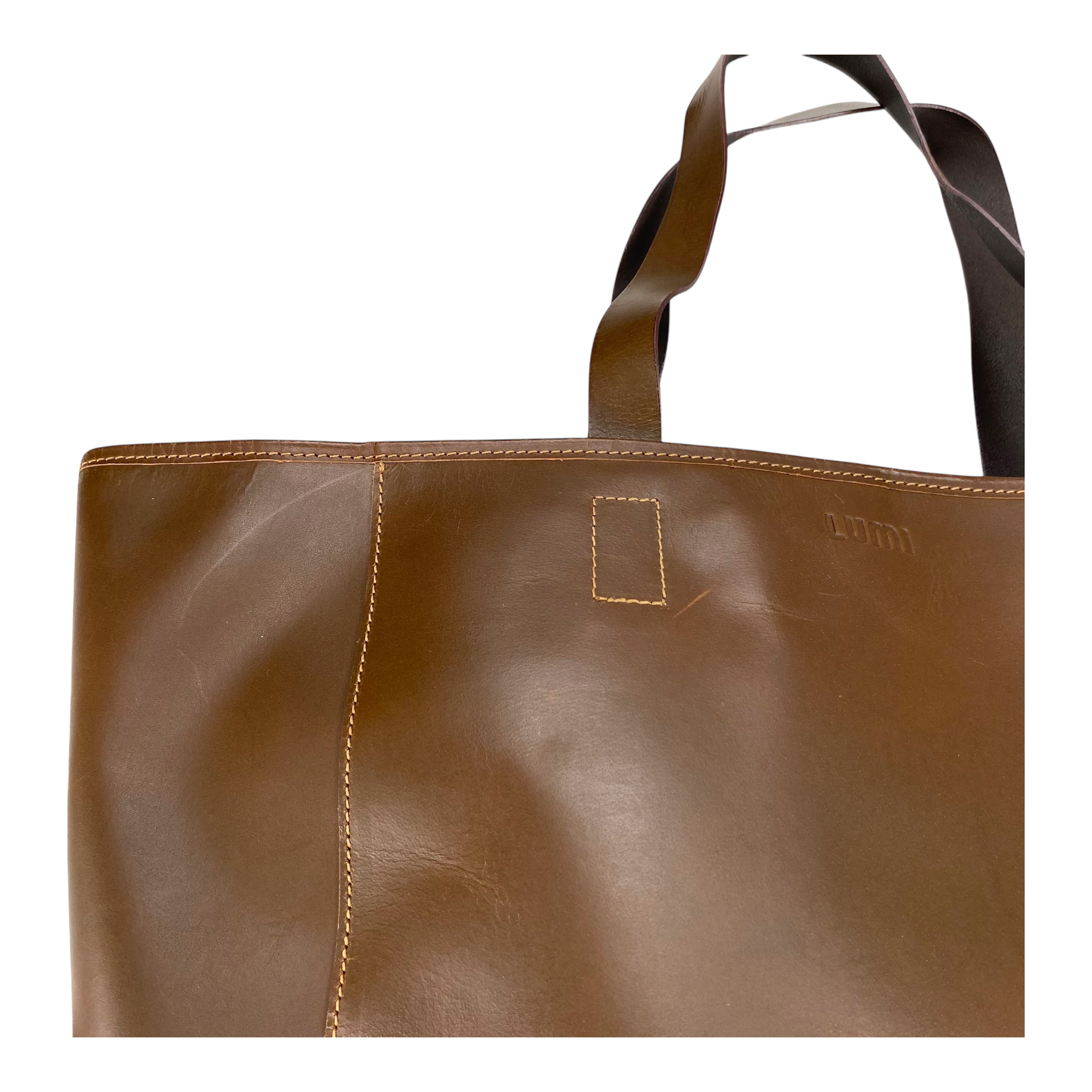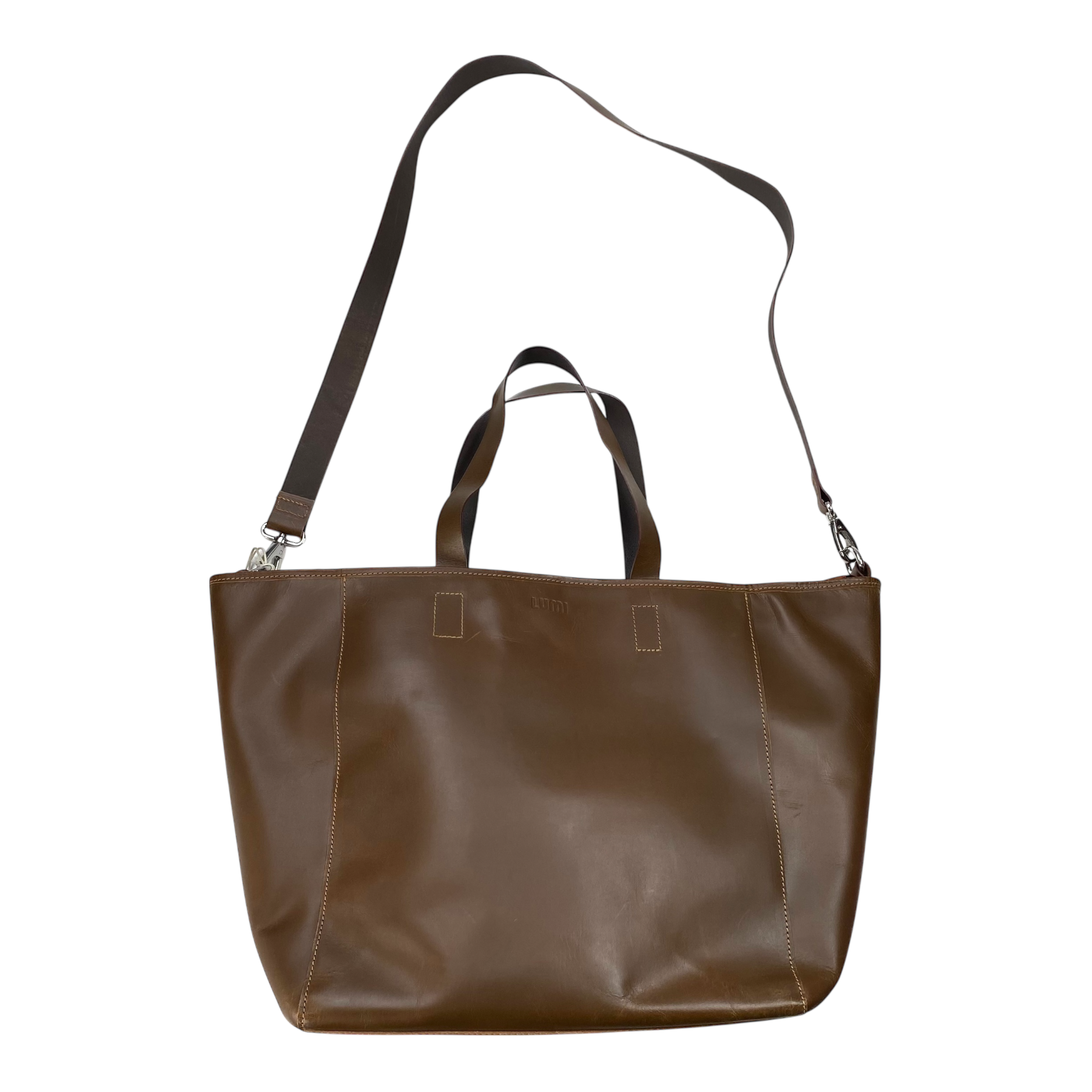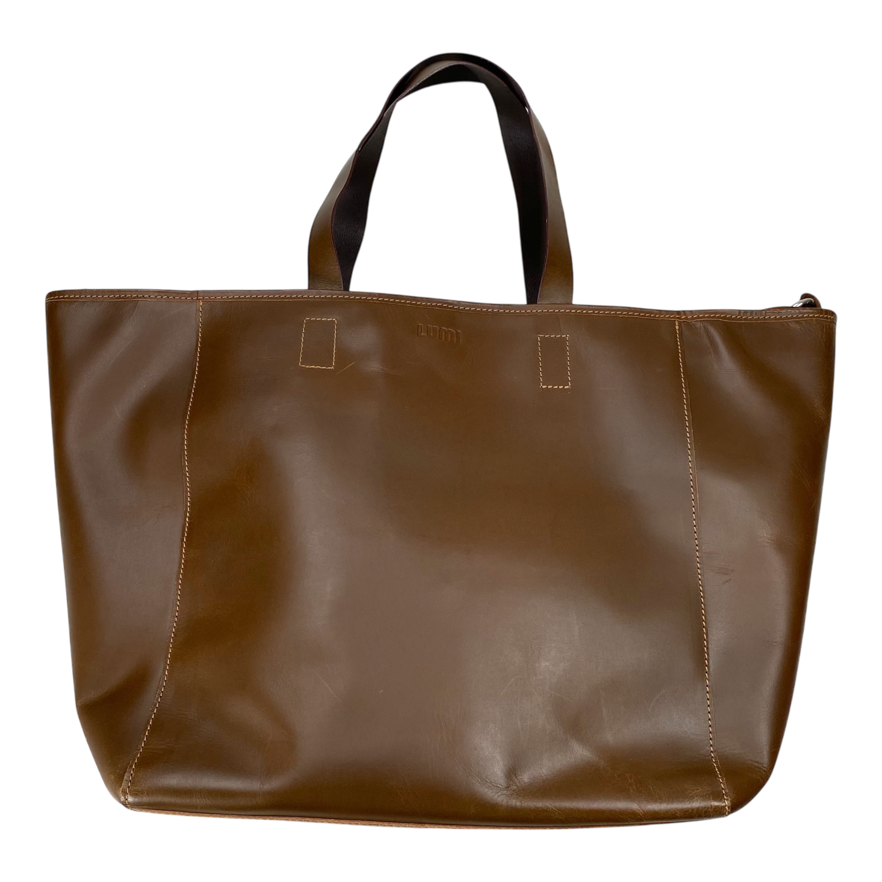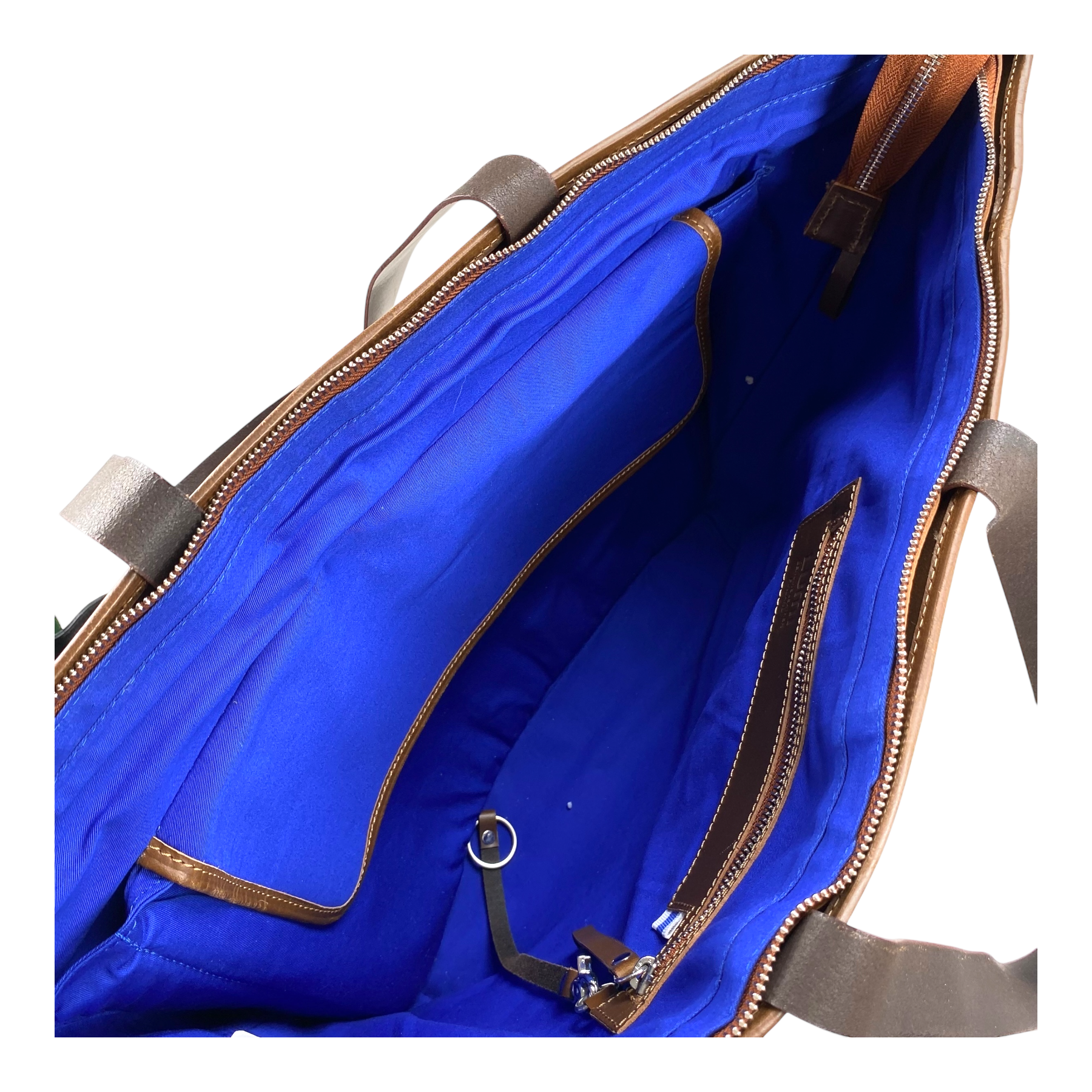 Lumi Eevi work tote bag. Comes with a removable (L110cm) crossbody shoulder strap. There is a zippered main pocket and a magnetic closure back pocket. Outside slash pocket; inside padded laptop pocket (fits 13″ laptop), inside zipper pocket, detachable key fob. Blue cotton twill lining