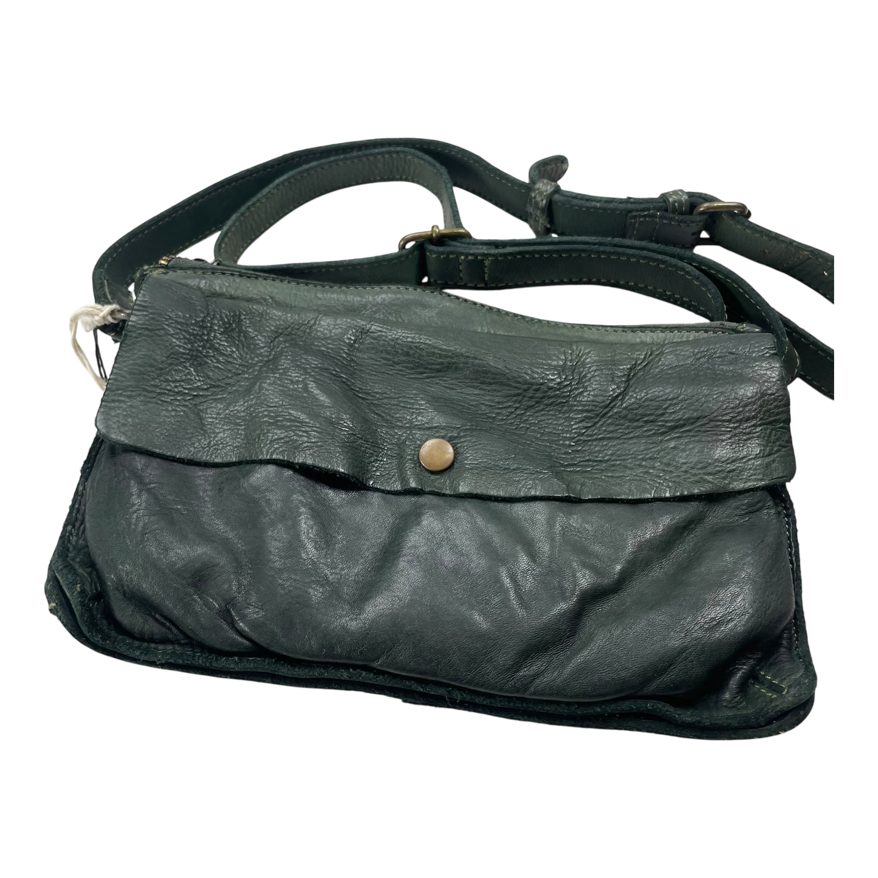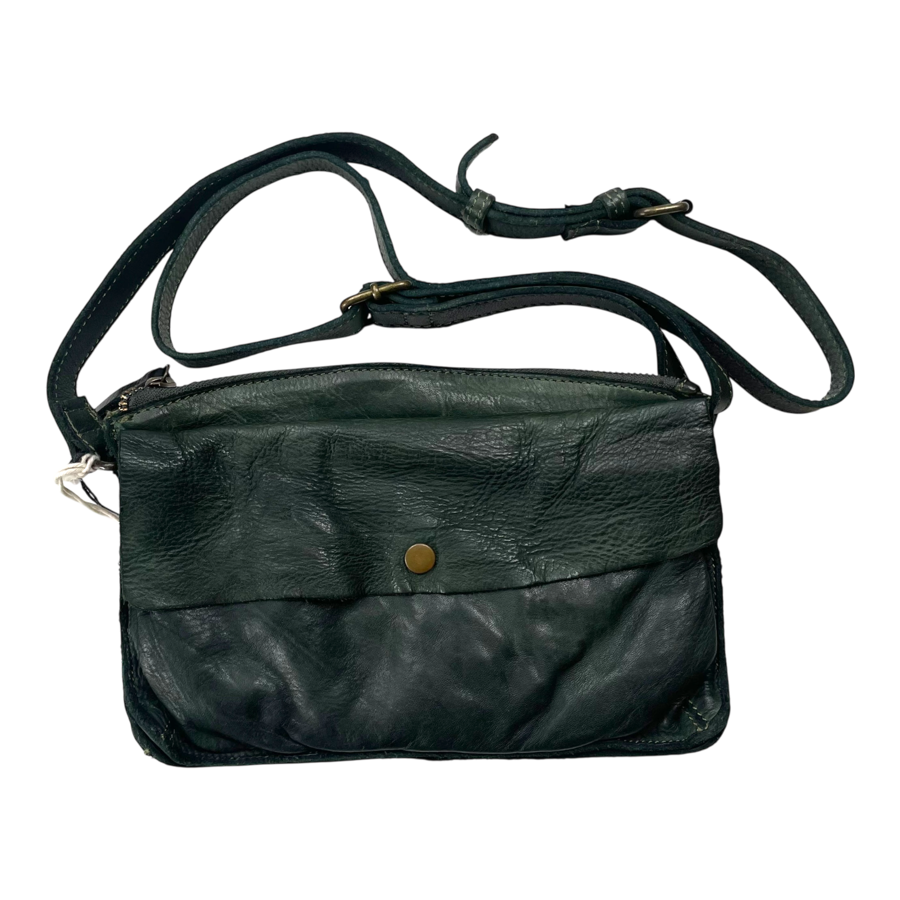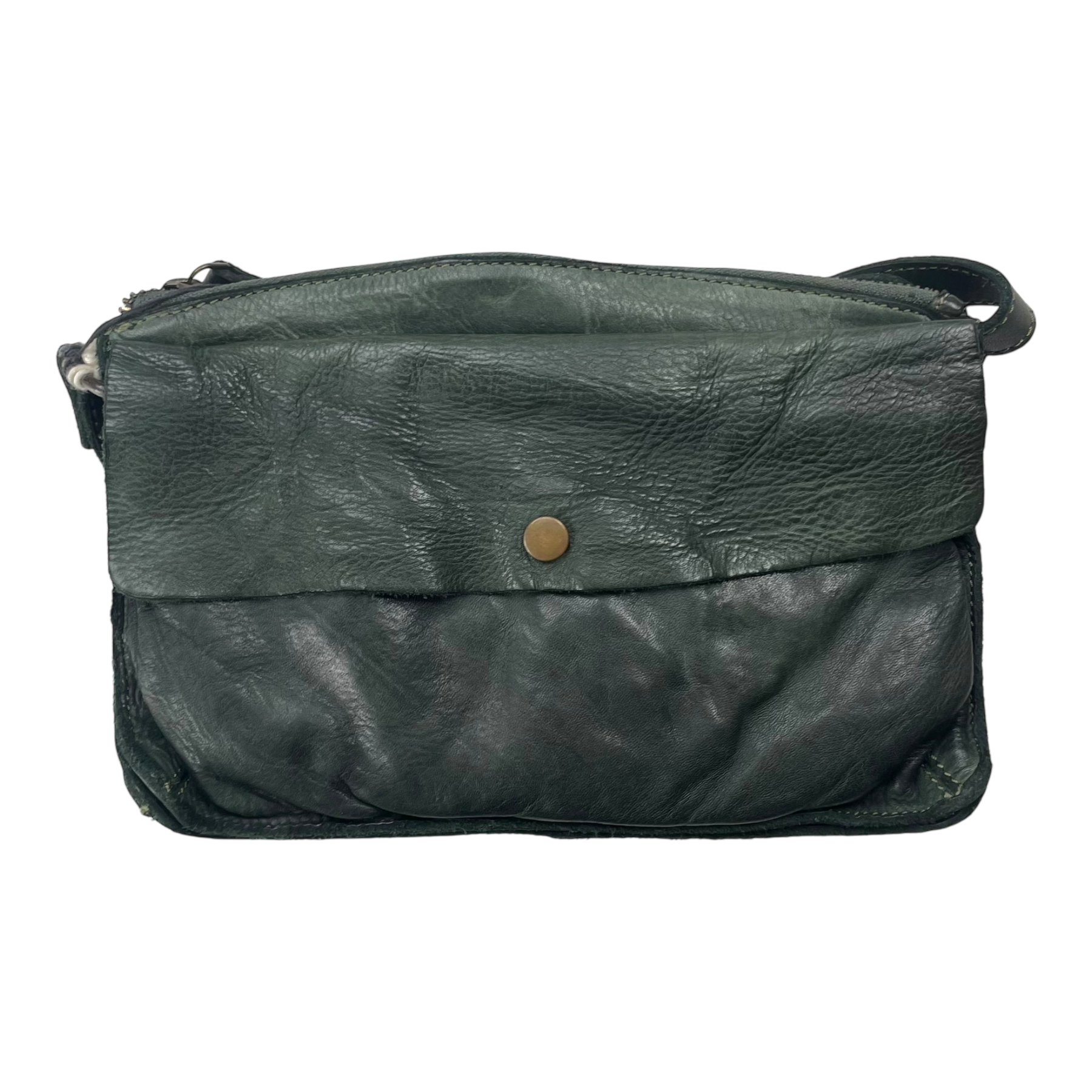 Harold's Bags Submarine small handbag is made of washed cowhide with a slightly shiny surface and rich feel. The bag is pleasantly crumpled and surprisingly light in proportion. The look of the bag is kept simple and is accentuated by a few details and trimmings. The small shoulder bag offers numerous compartments. The front pocket is secured with the metal snap button. Behind it is the main compartment with zipper. The bag is worn crossover on the long leather adjustable strap.